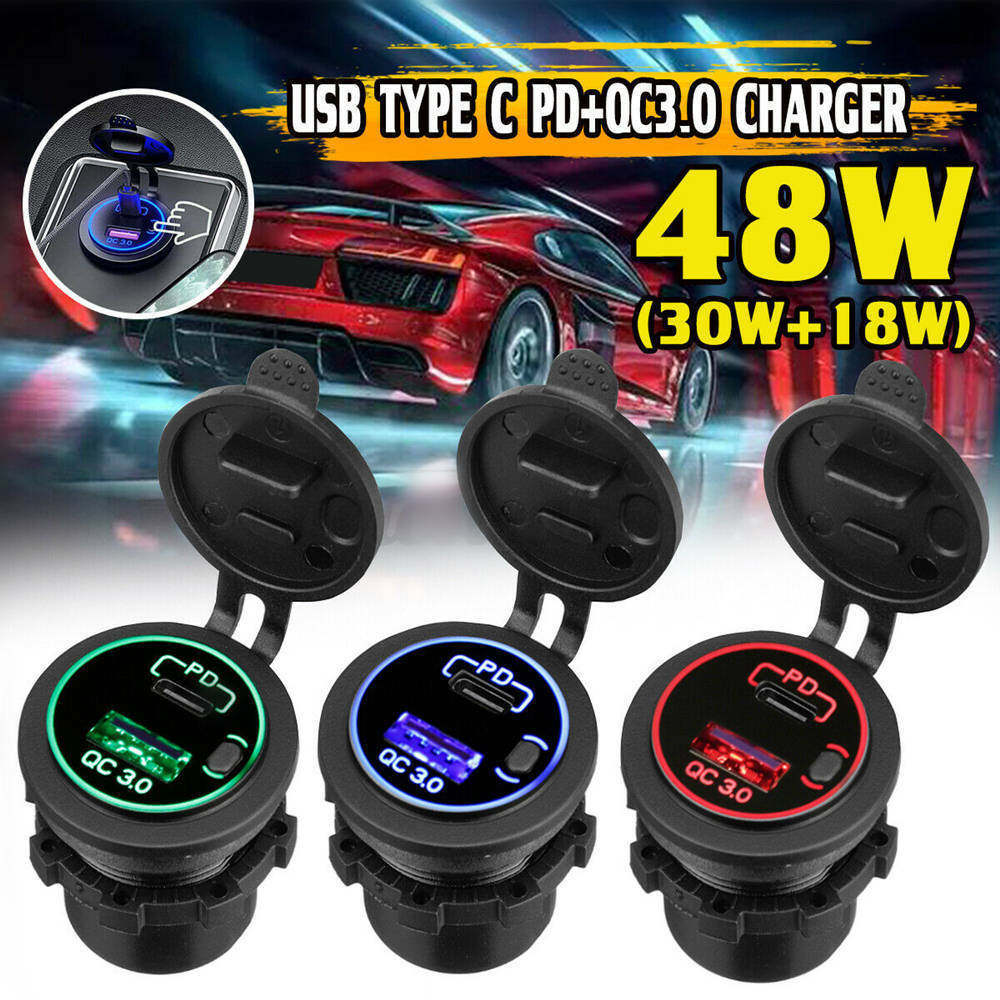 Car Rv Motorcycle Yacht Universal Car Charger Car Modified Charger Apple Mobile Phone Flash Charging Pdqc Fast Charging USB