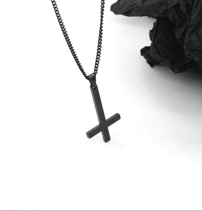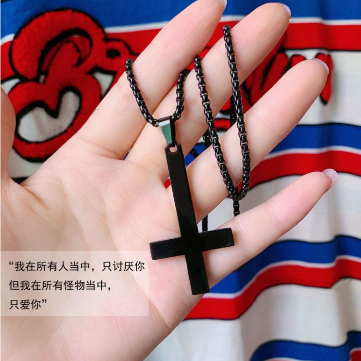 Black Inverted Cross Necklace Boys Titanium Steel Pendant Girls Startled Simple Seal White Willow Trendy Men's Accessories