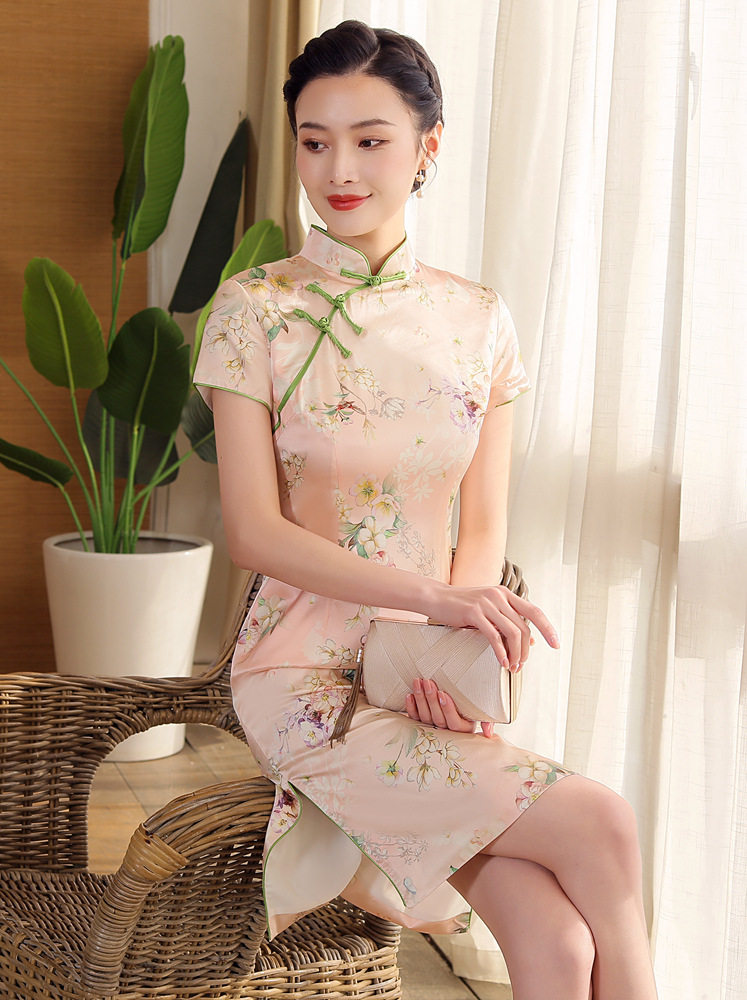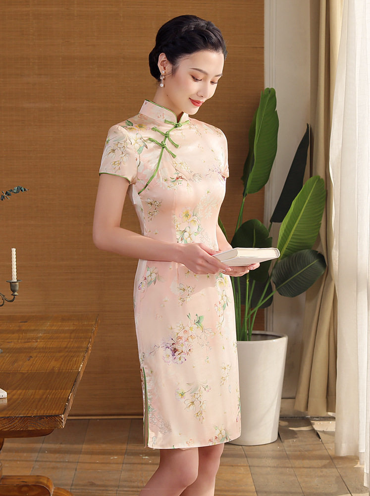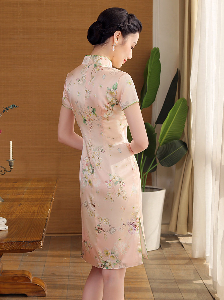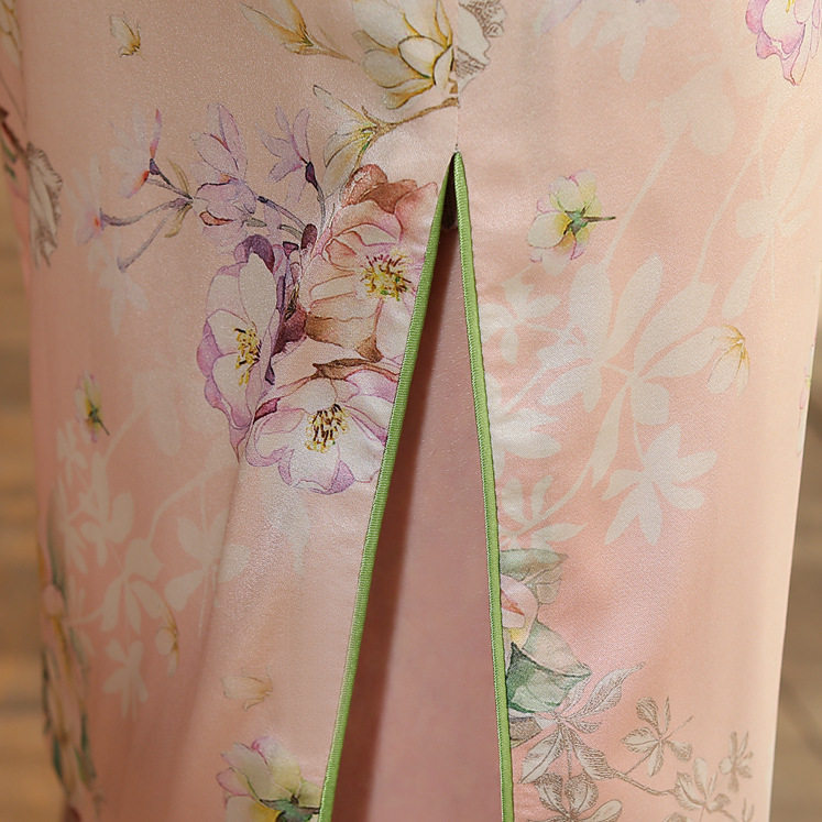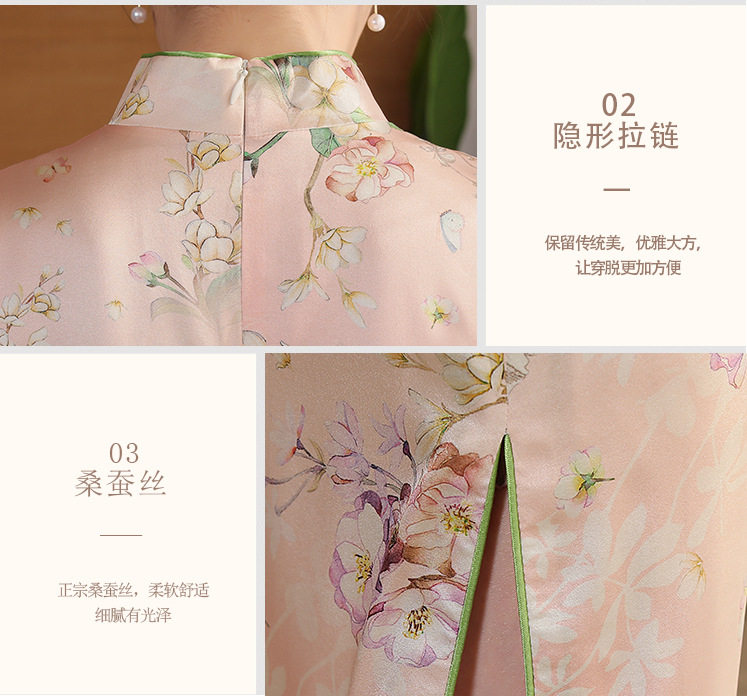 Cheongsam wholesale 2022 summer slim slim age-reducing Tang suit stand collar mulberry silk Chinese cheongsam skirt 3614