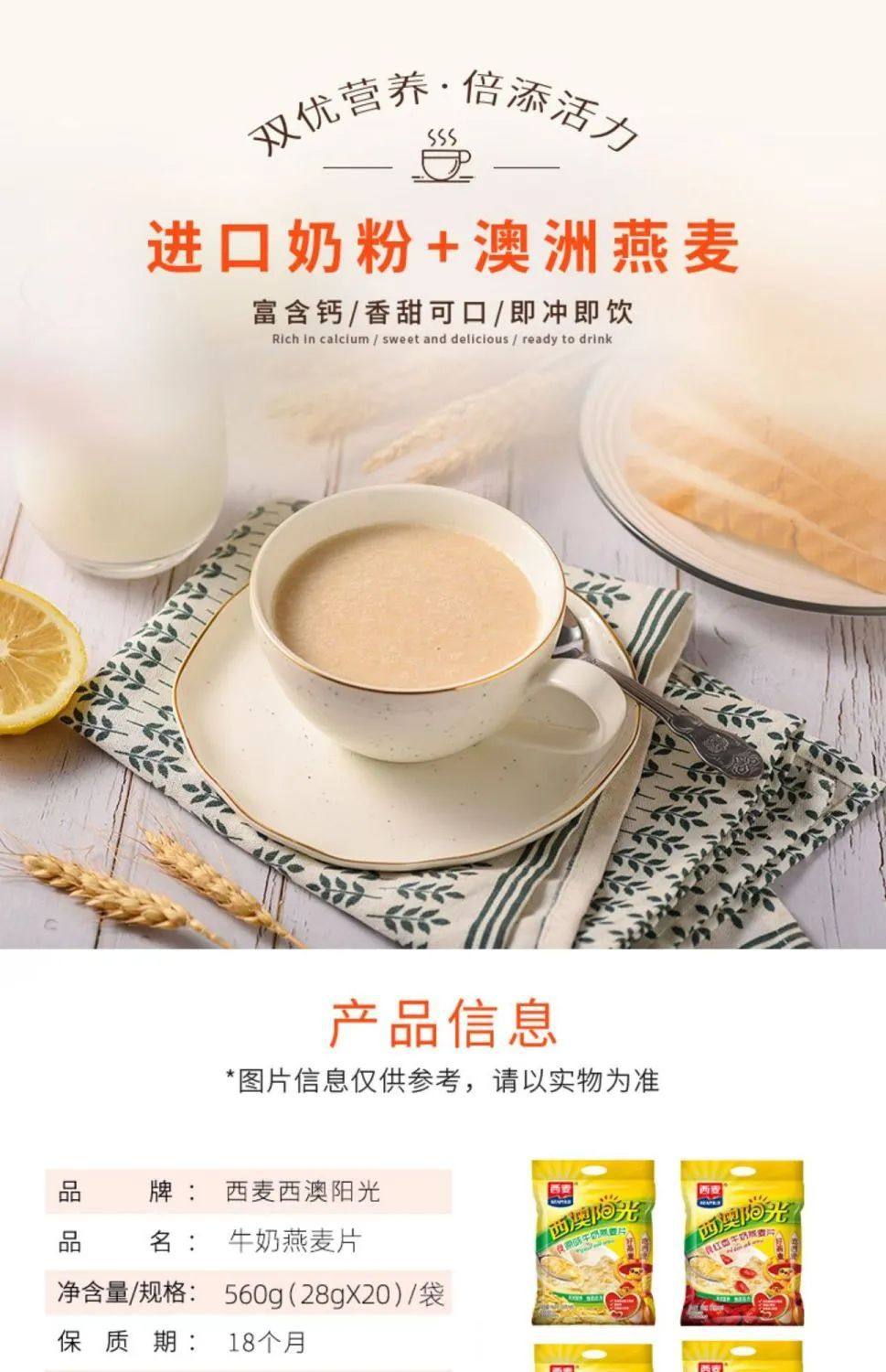 Western wheat oatmeal Western Australia Sunshine Original Milk oatmeal 560g bagged instant breakfast cereal