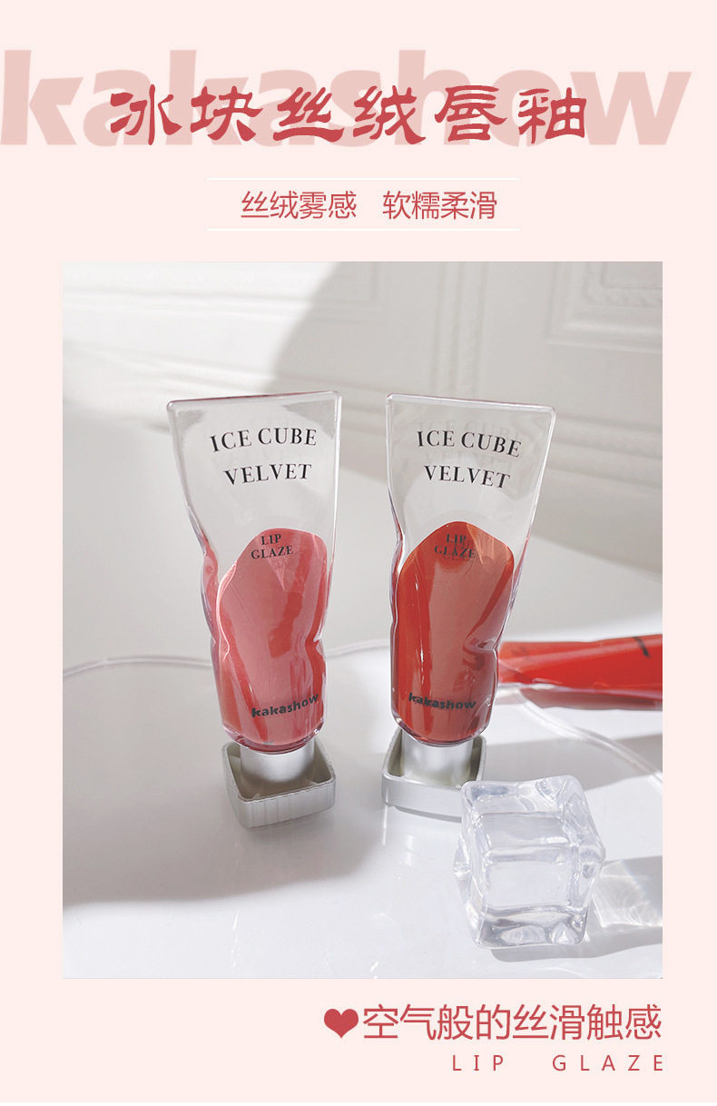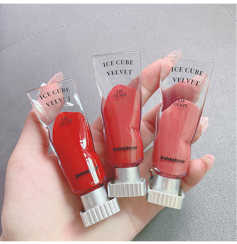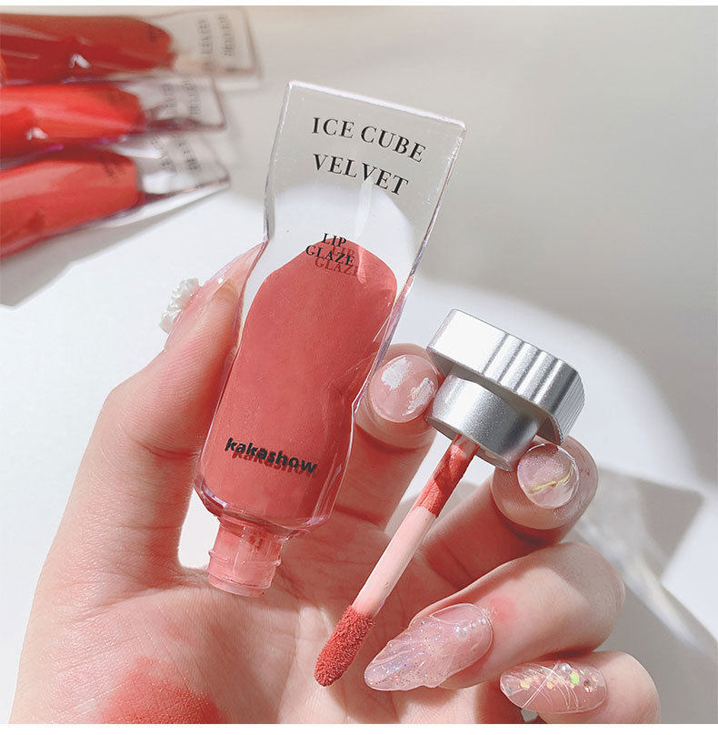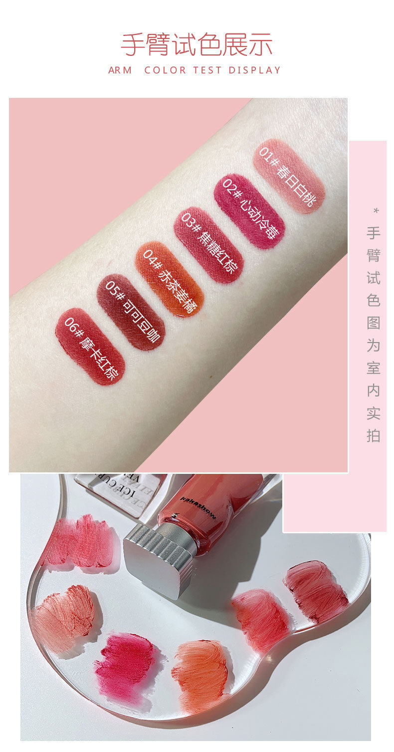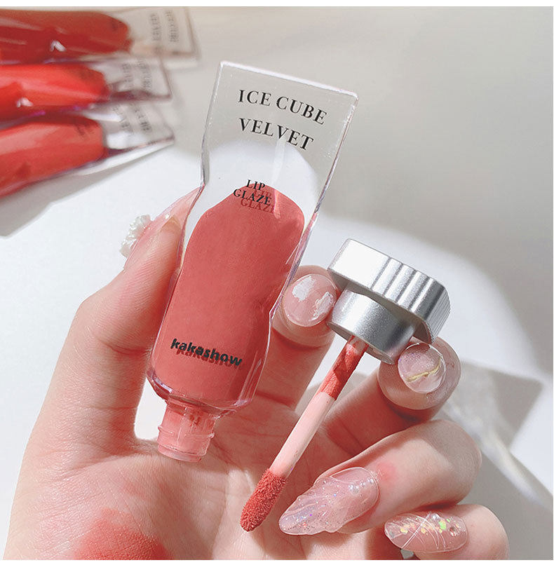 Ice block lip glaze KAKASHOW pigment velvet lip gloss lip gloss lipstick matte white not easy to fade milk tea color