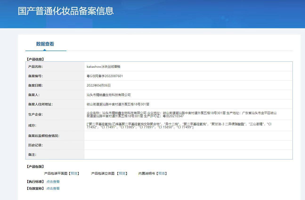| Production license number | Cantonese makeup 20210347 |