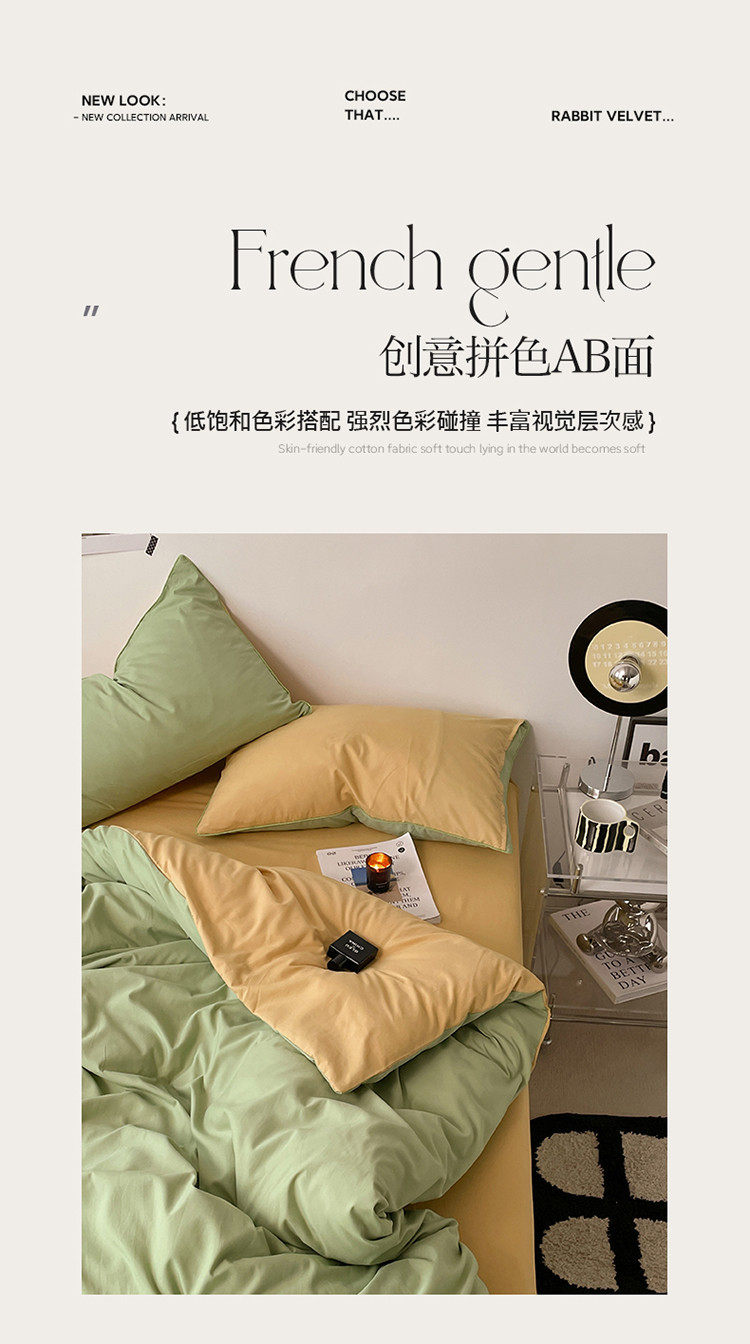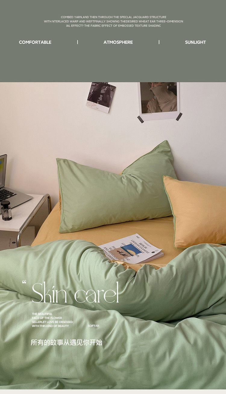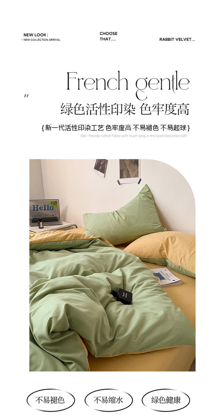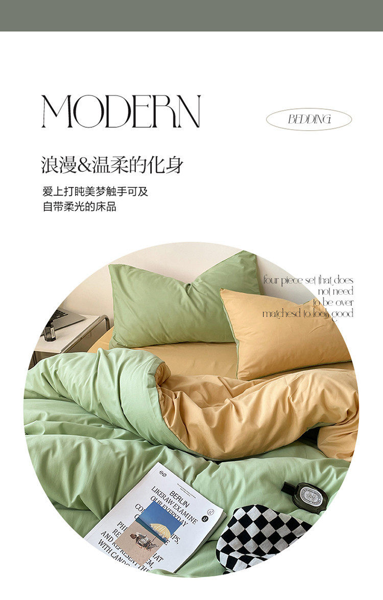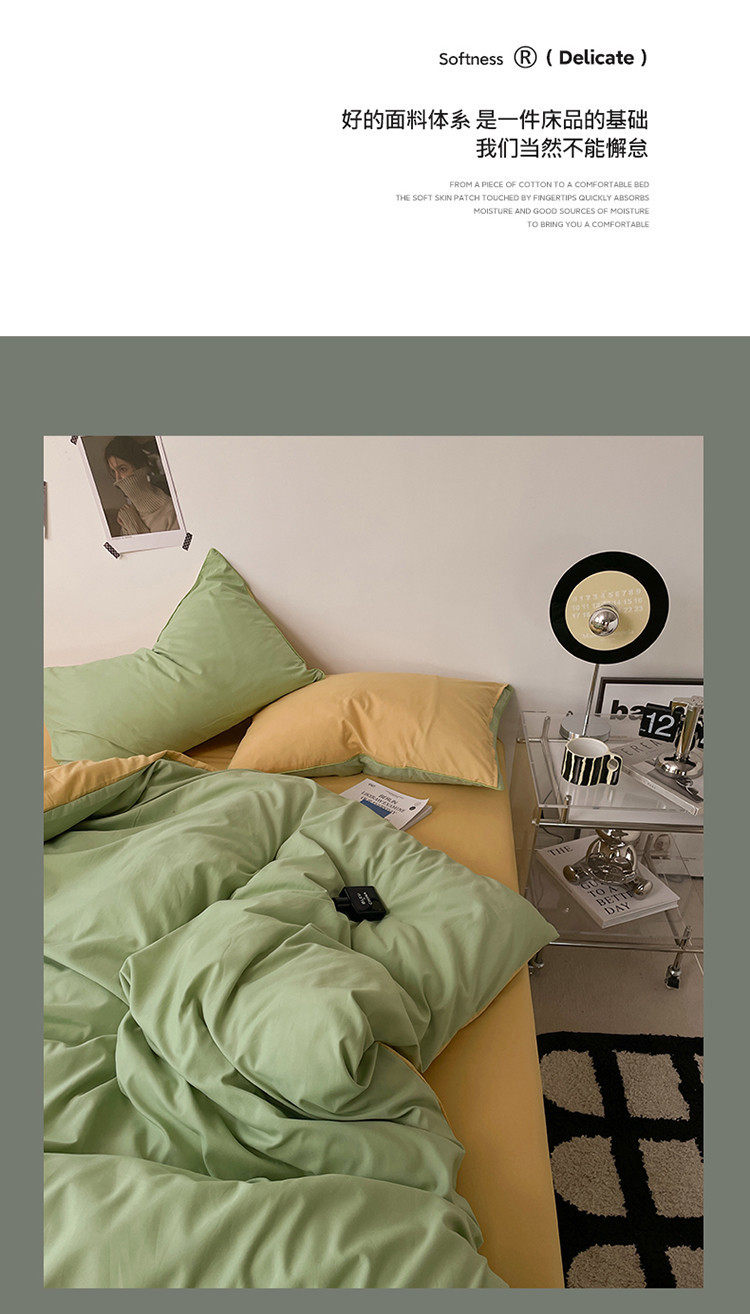 Customizable ins style four-piece Japanese style simple skin-friendly bed sheet quilt cover hotel solid color three-piece set