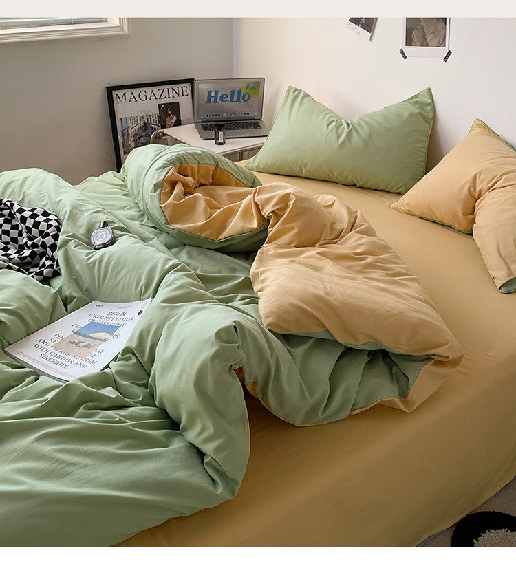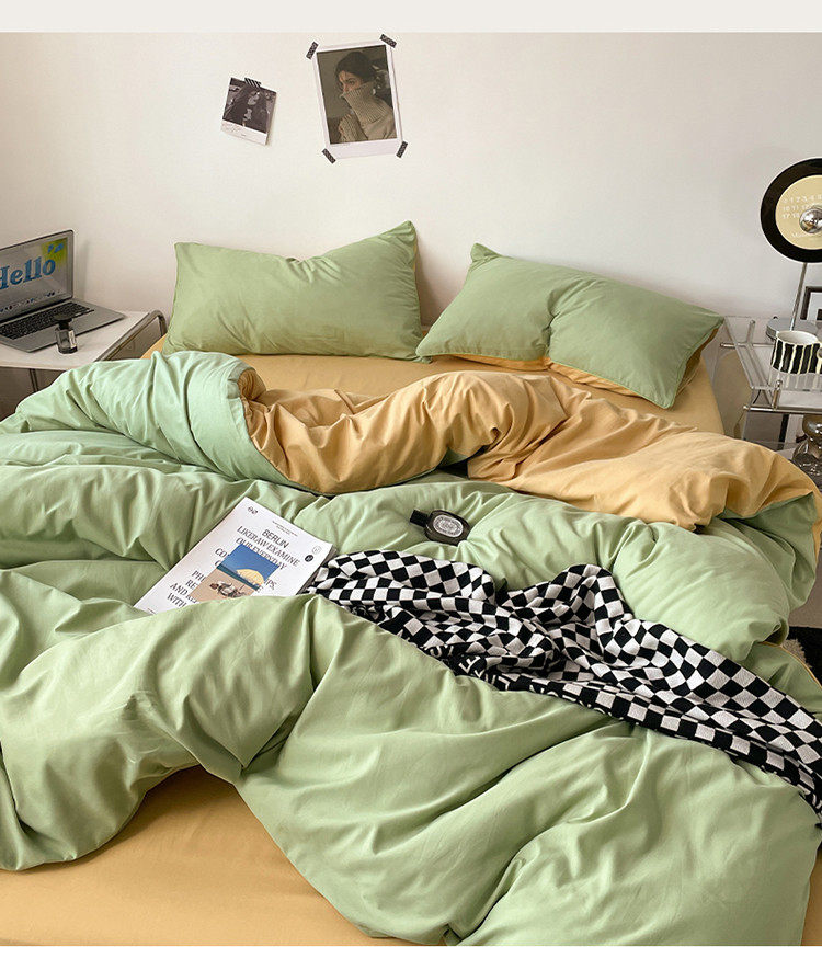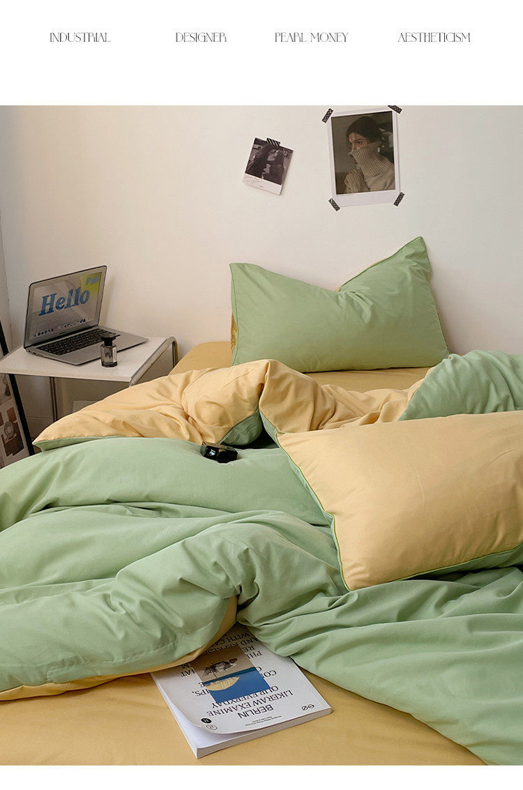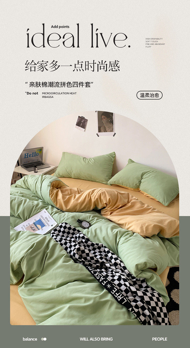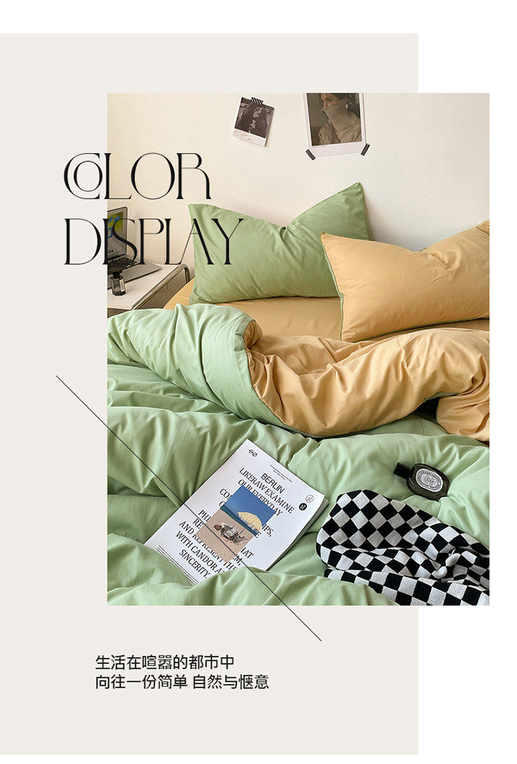 Customizable ins style four-piece Japanese style simple skin-friendly bed sheet quilt cover hotel solid color three-piece set