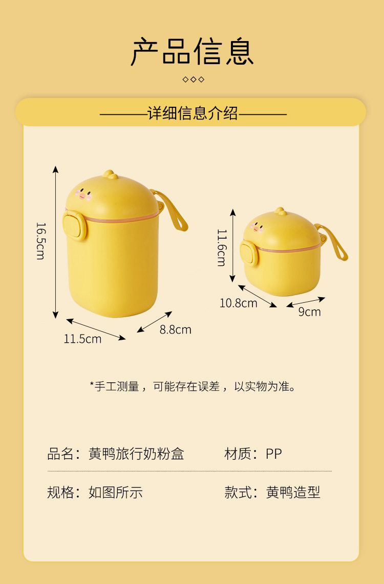 Cartoon Yellow Duck milk powder box portable moisture-proof portable box creative spoon powder separation milk powder storage box size
