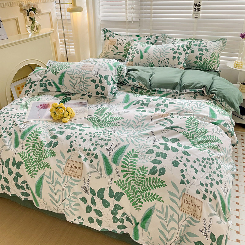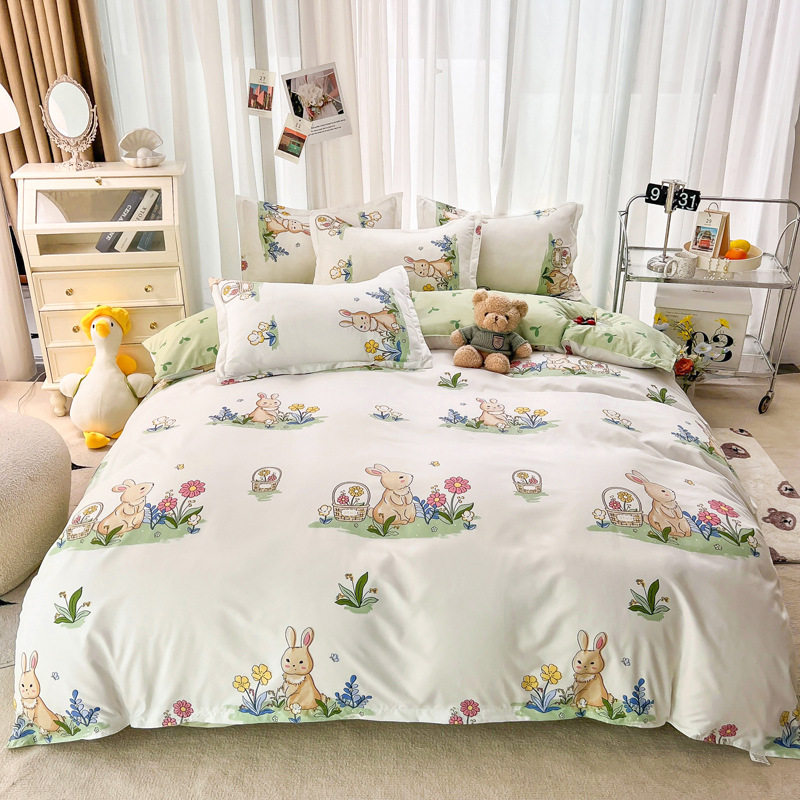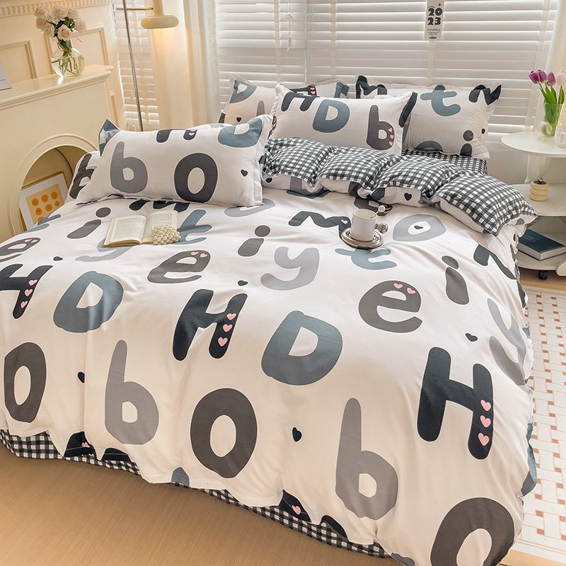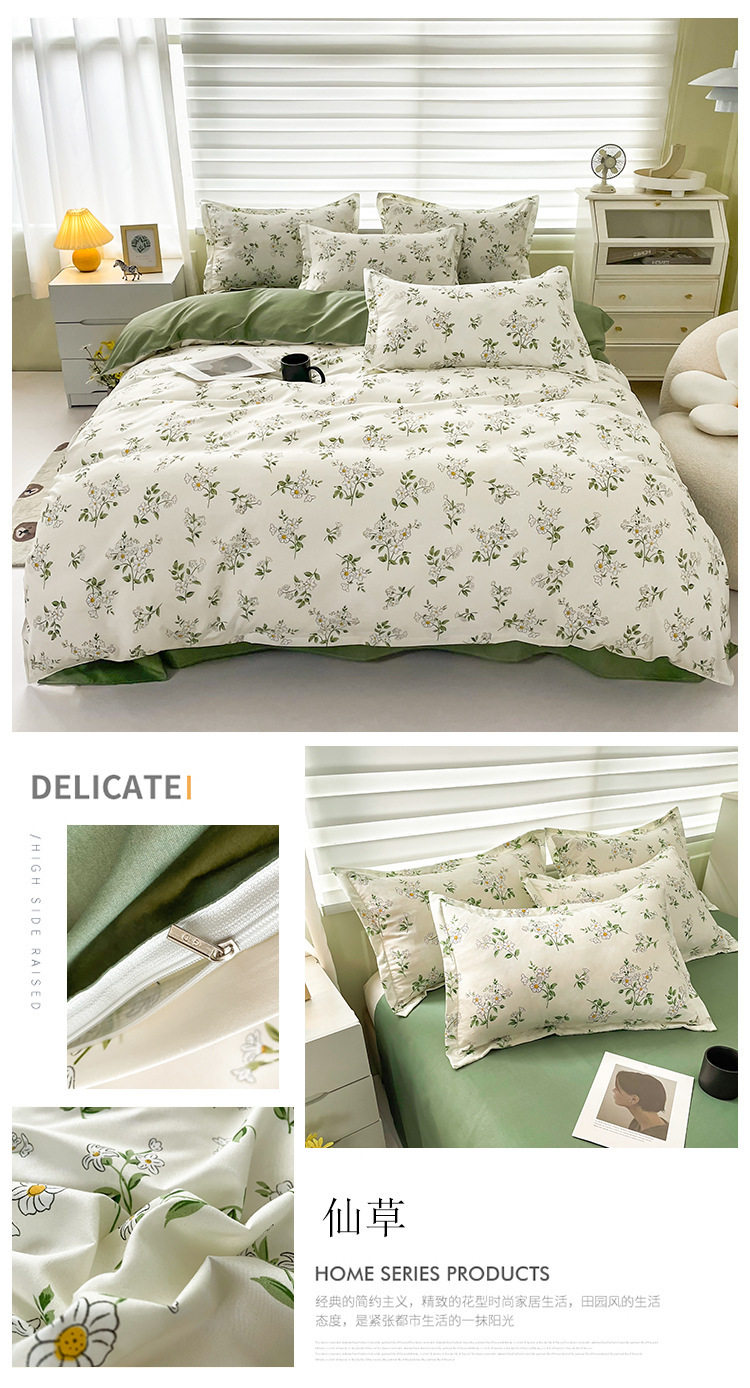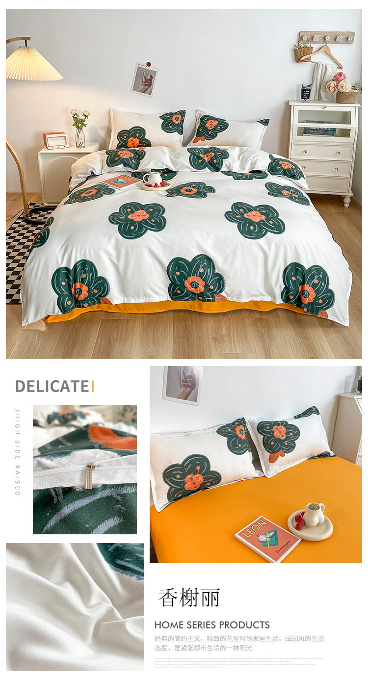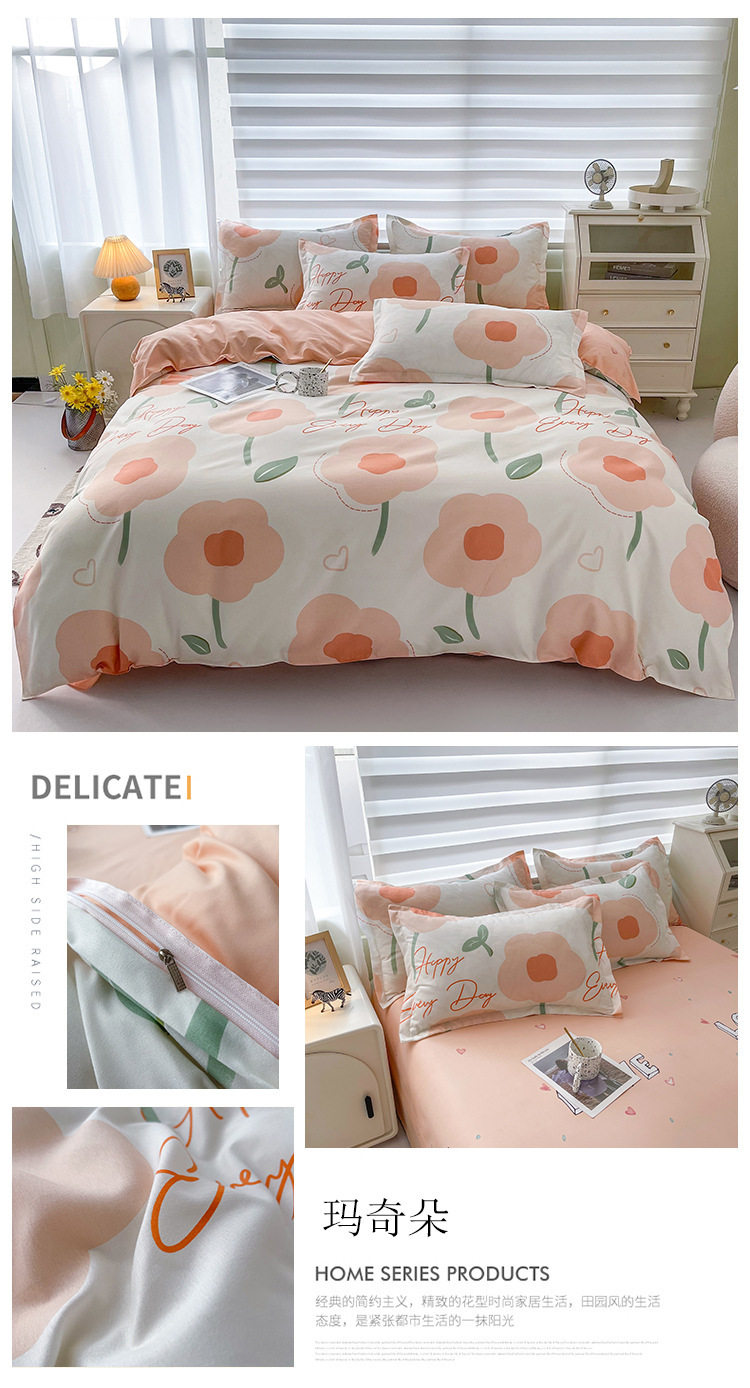 Fresh Style Washed Cotton Four-piece Bedding Bed Sheet Quilt Cover Korean Style Princess Floral Girl Dormitory Three-piece Set