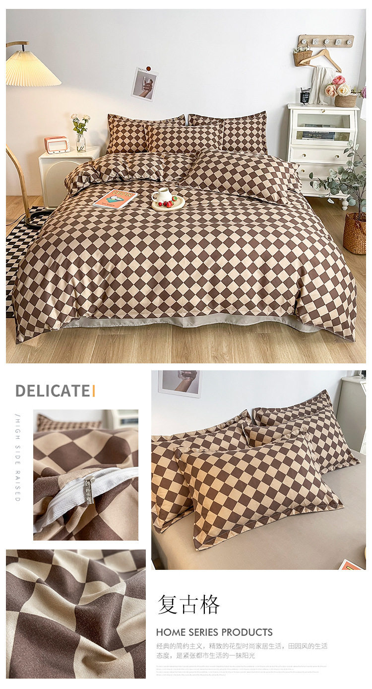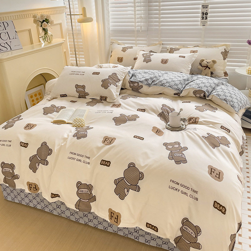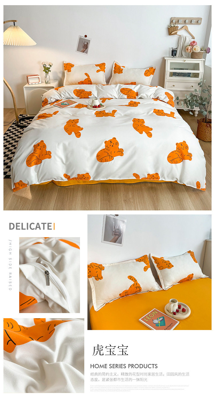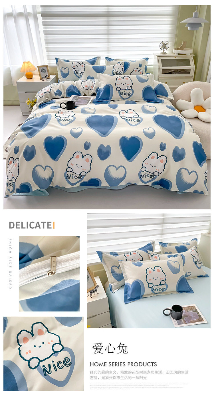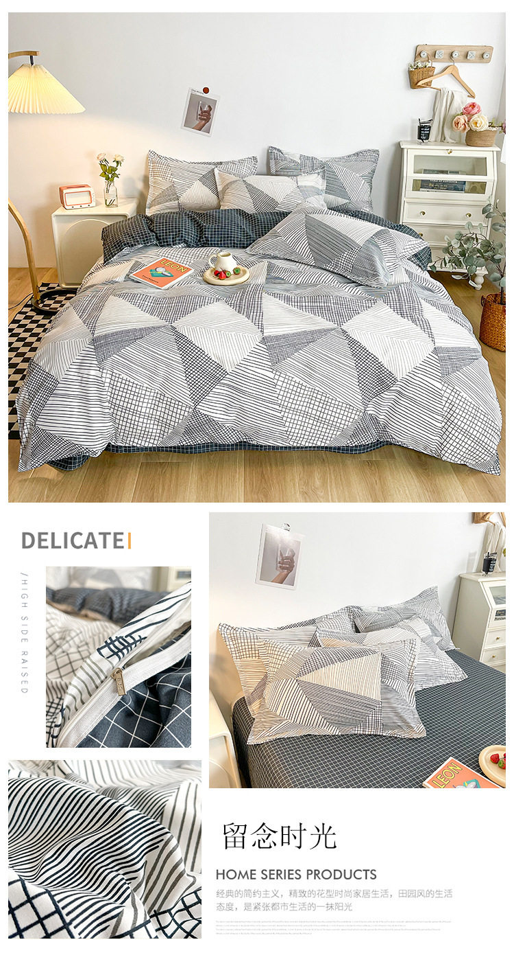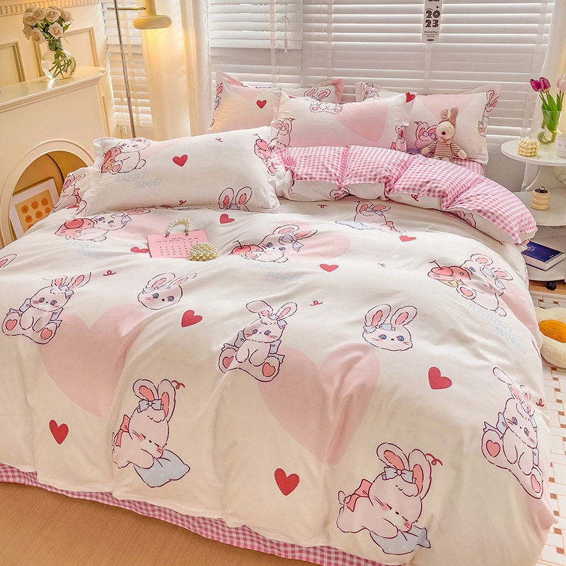 Fresh Style Washed Cotton Four-piece Bedding Bed Sheet Quilt Cover Korean Style Princess Floral Girl Dormitory Three-piece Set