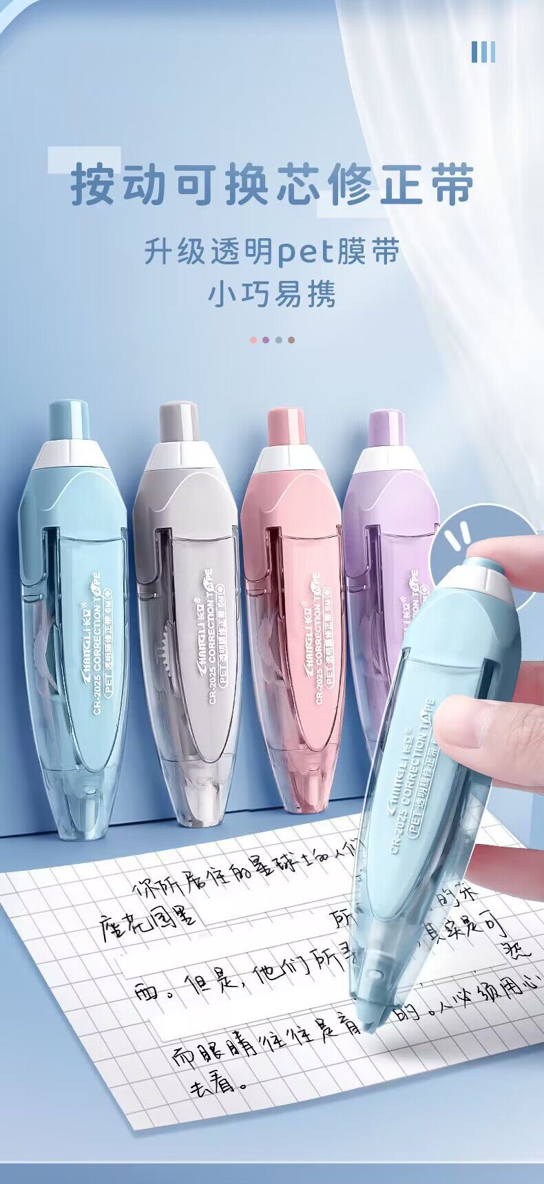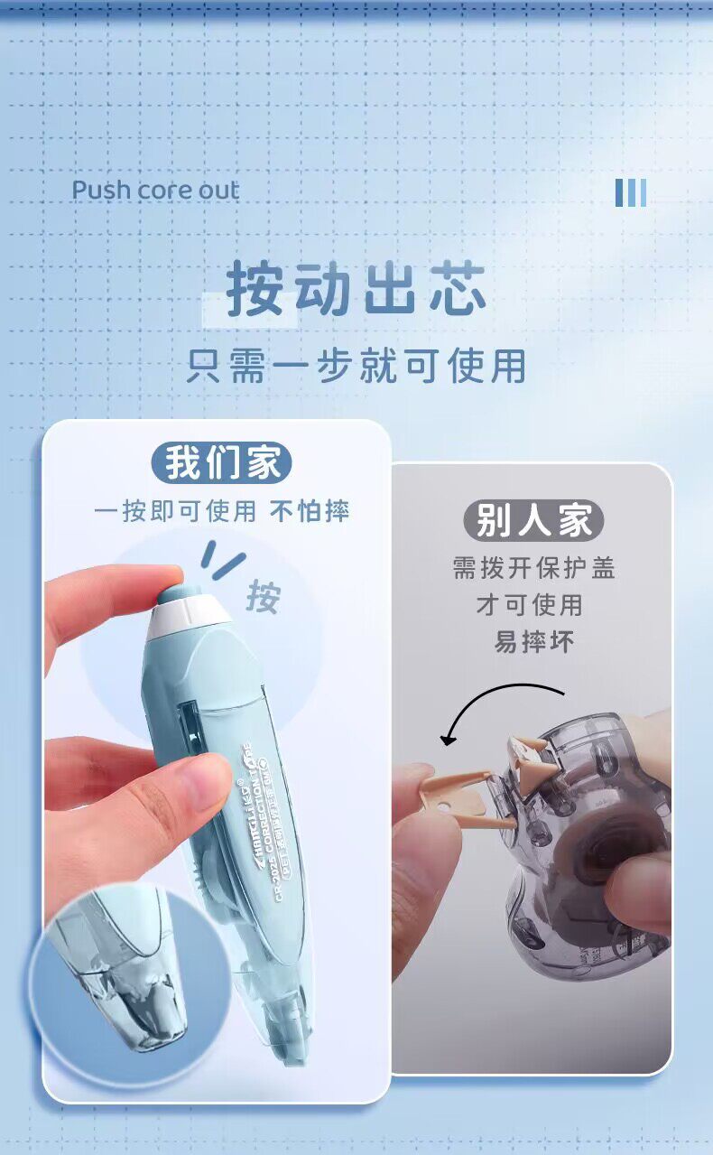 [Press Replaceable Core] Changli Correction Tape Wholesale High Color Value ins Japanese Portable Wear Correction Tape Stationery