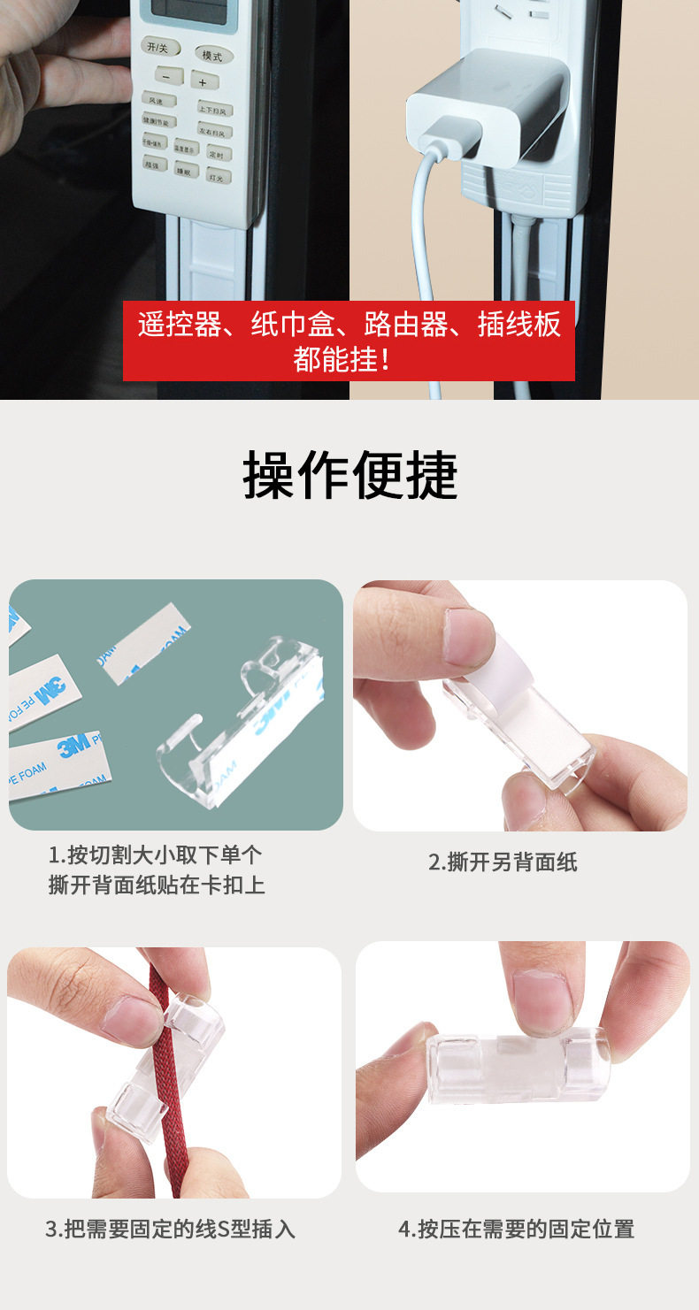 | Color | Cable management buckle transparent small size 20 pieces per plate,Cable management buckle transparent large size 16 pieces per plate,Power strip holder right angle style (paper card package),Rotary power strip holder (opp bag),Plug hook transparent green 4 pcs,Plug hook transparent black 4 pcs,Plug hooks transparent silver 4 pcs |