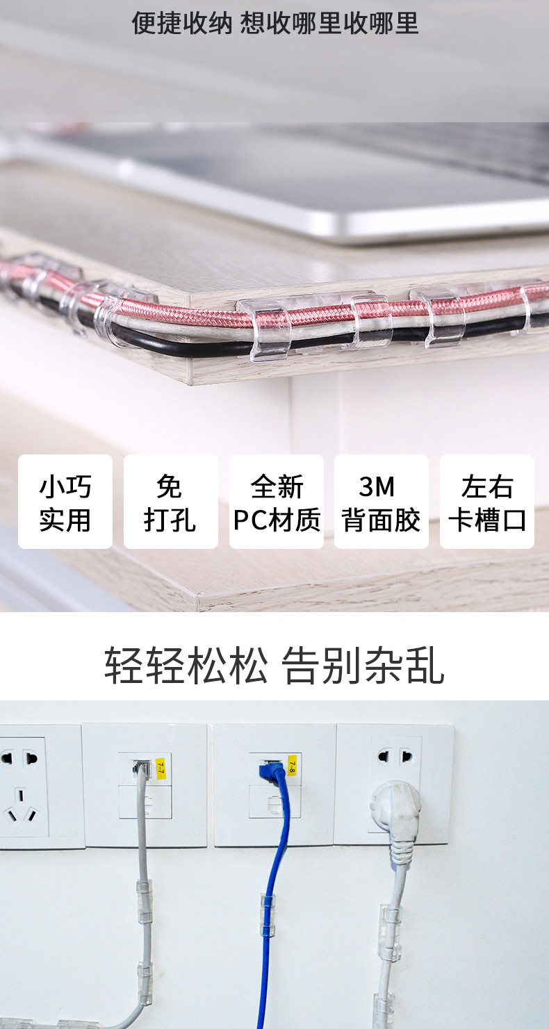 Wire Organizer Plug-In Row Wall Holder Data Cable Storage and Organization Artifact Clip Buckle Winder Buckle