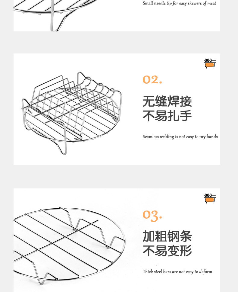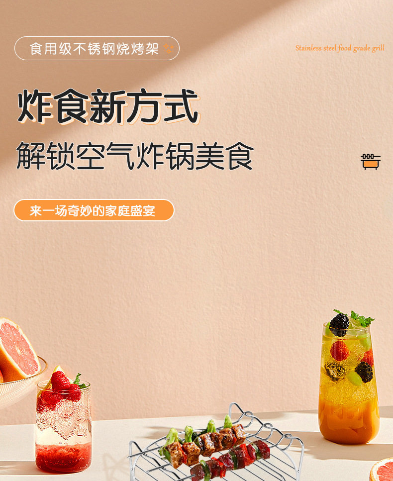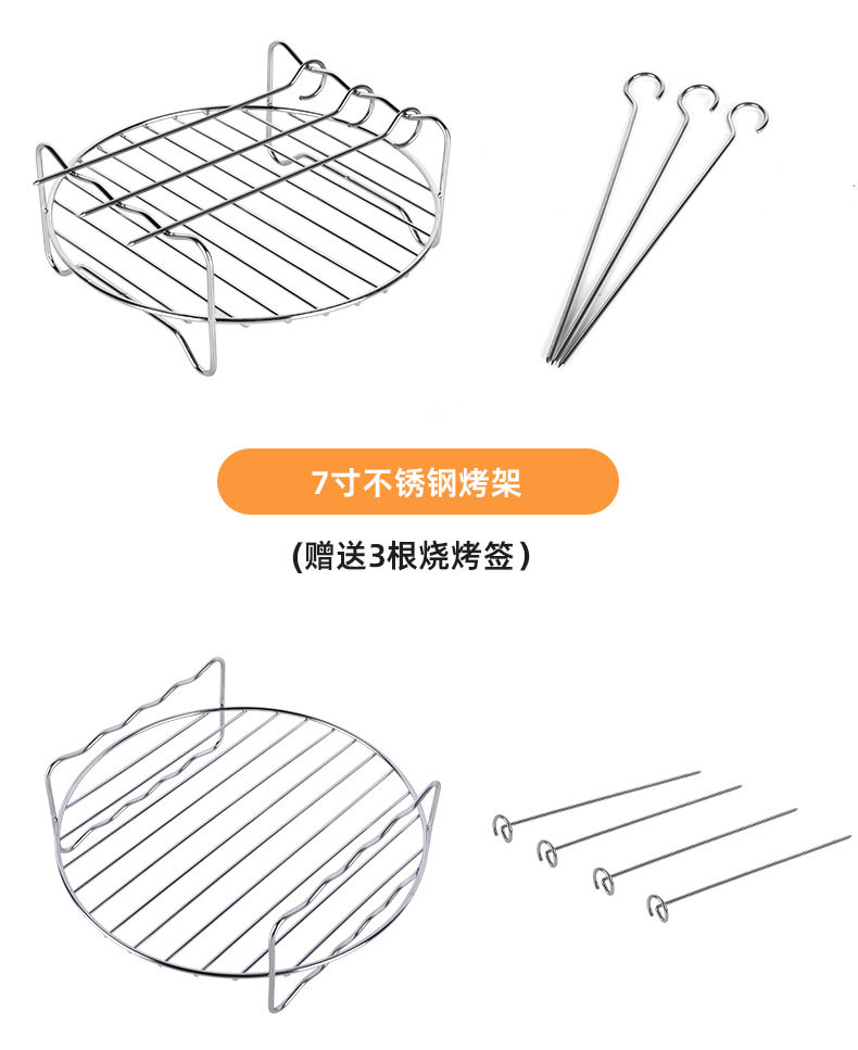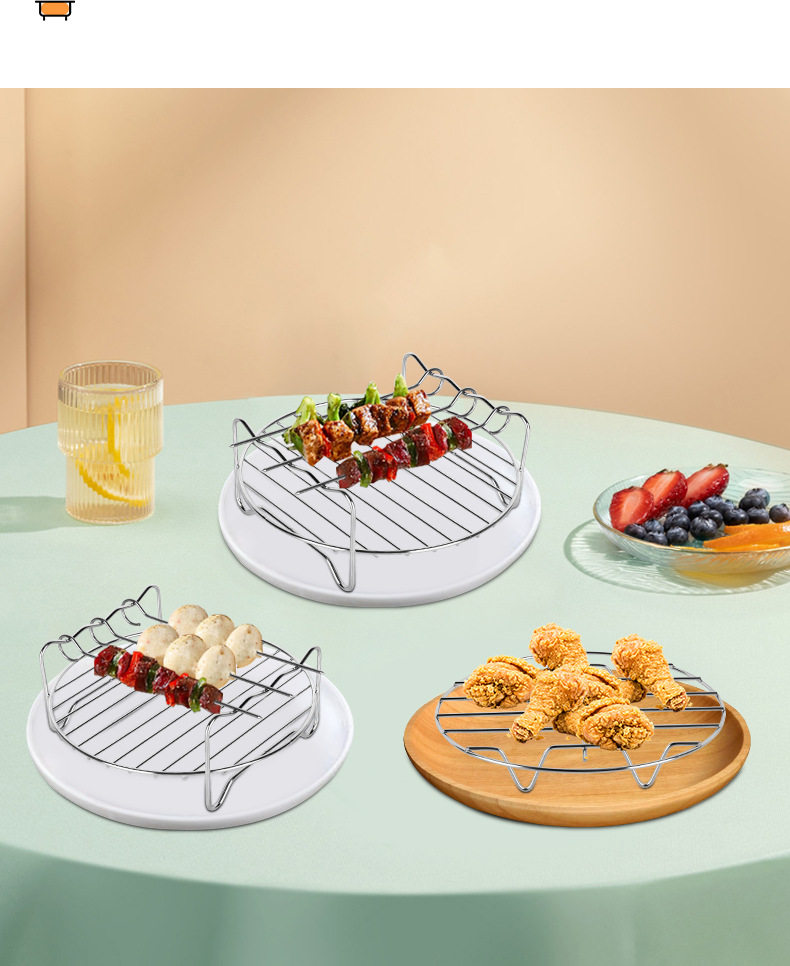 Cross-Border Air Fryer Accessories Set 7inch 8inch Stainless Steel Round Barbecue Grill Electric Fryer Accessories Wholesale