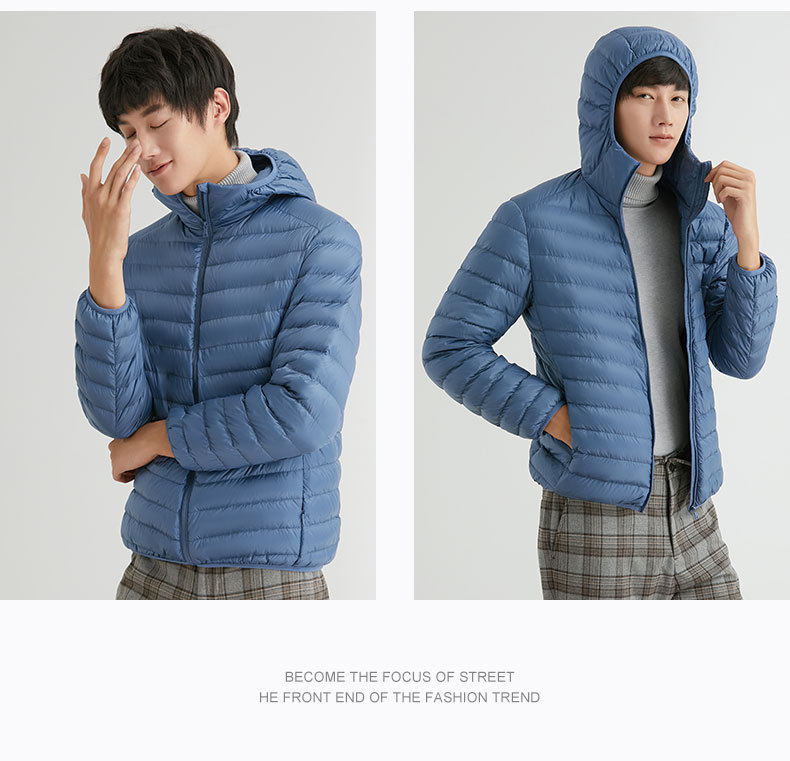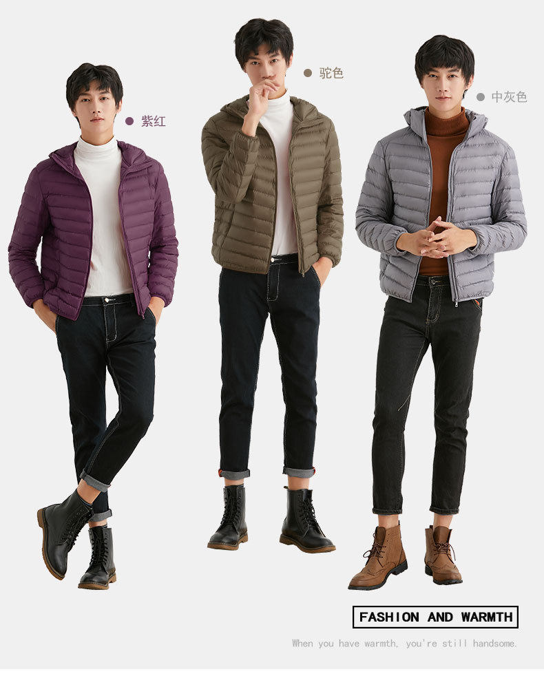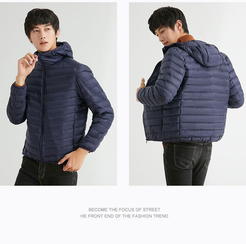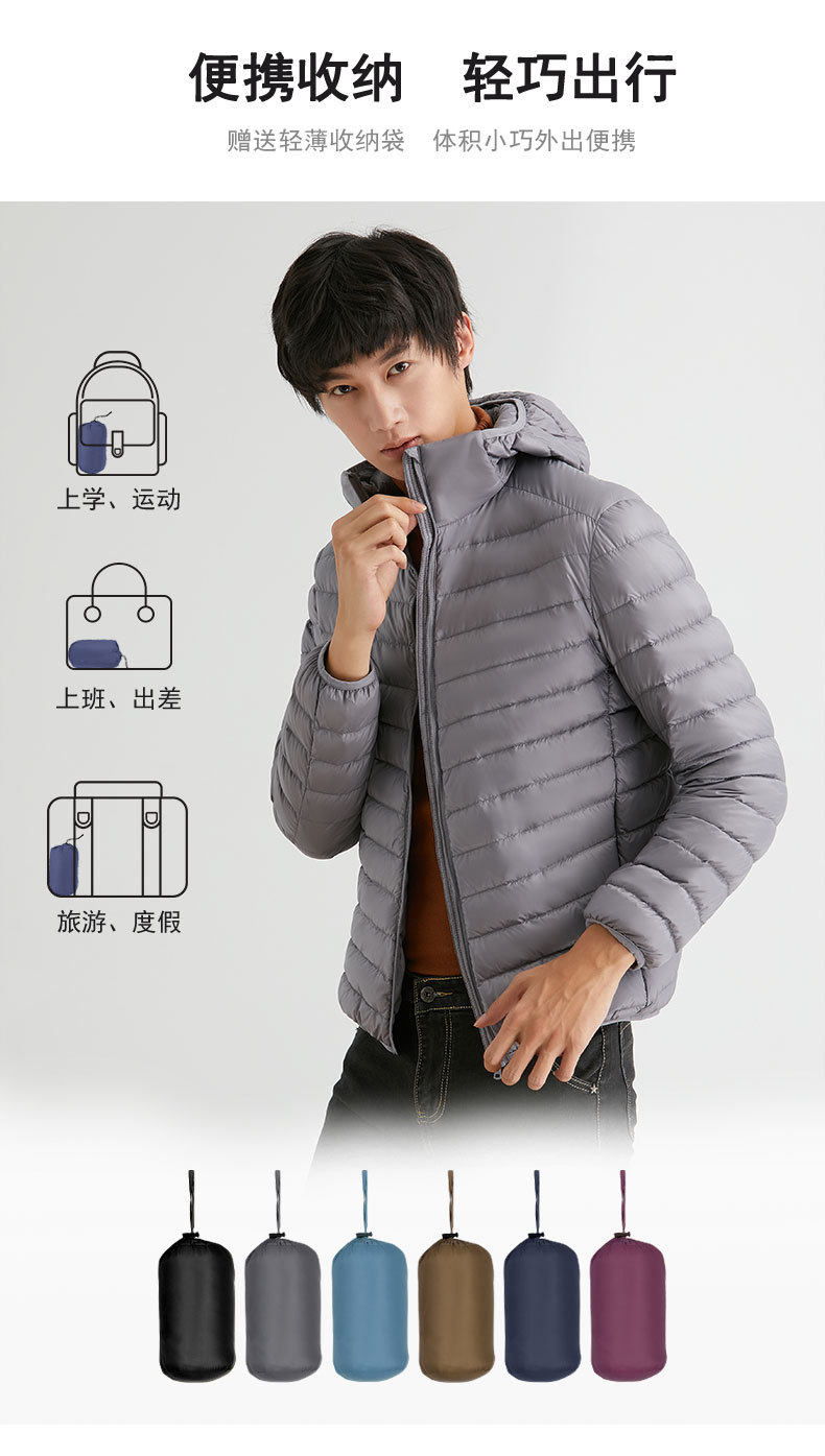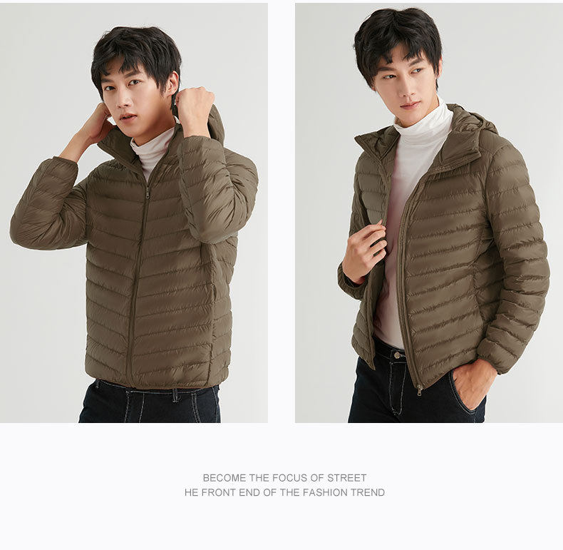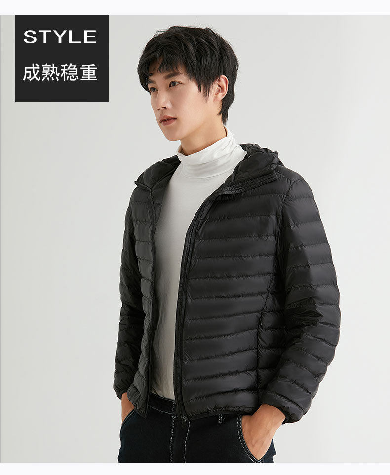 90 velvet men's hooded down jacket light short large size light foreign style white duck down jacket Pinghu down jacket wholesale