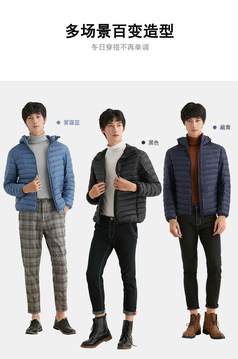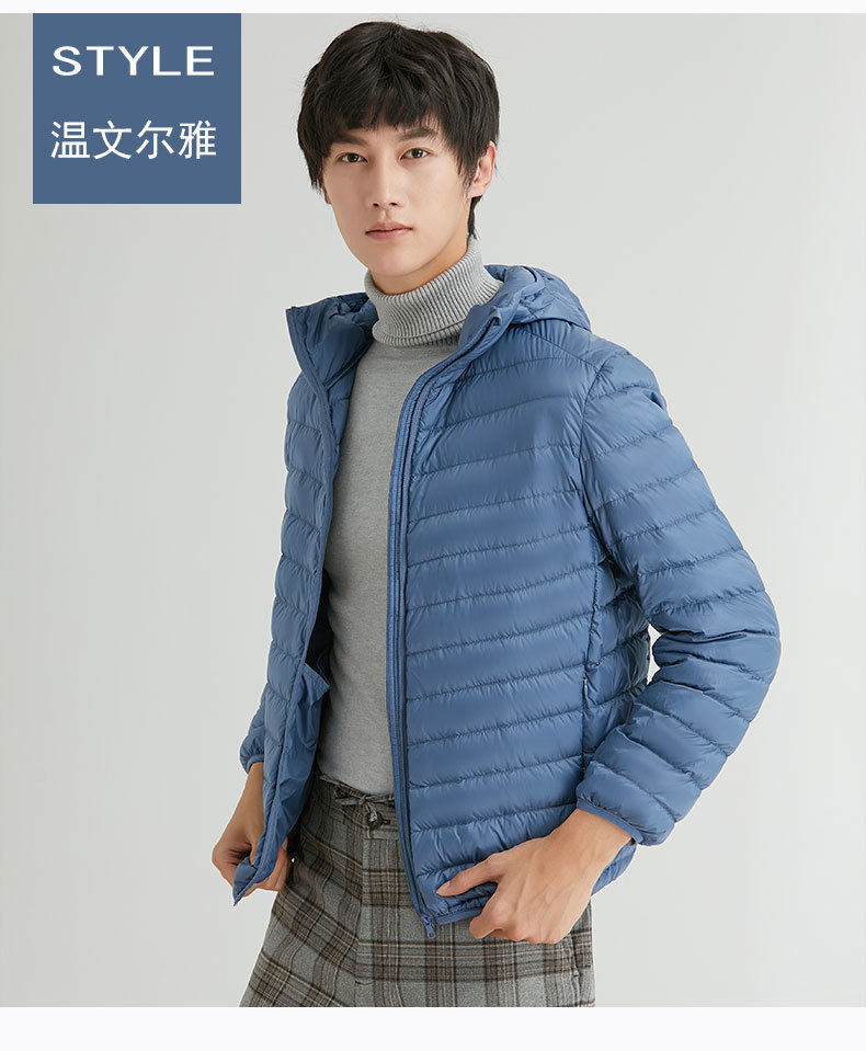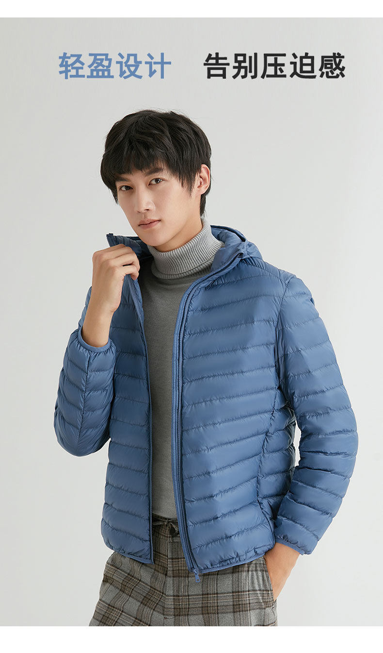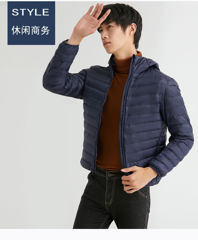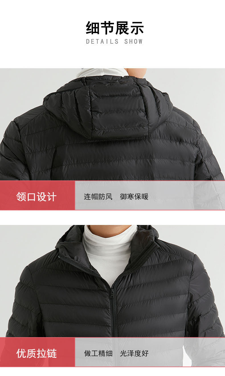 90 velvet men's hooded down jacket light short large size light foreign style white duck down jacket Pinghu down jacket wholesale