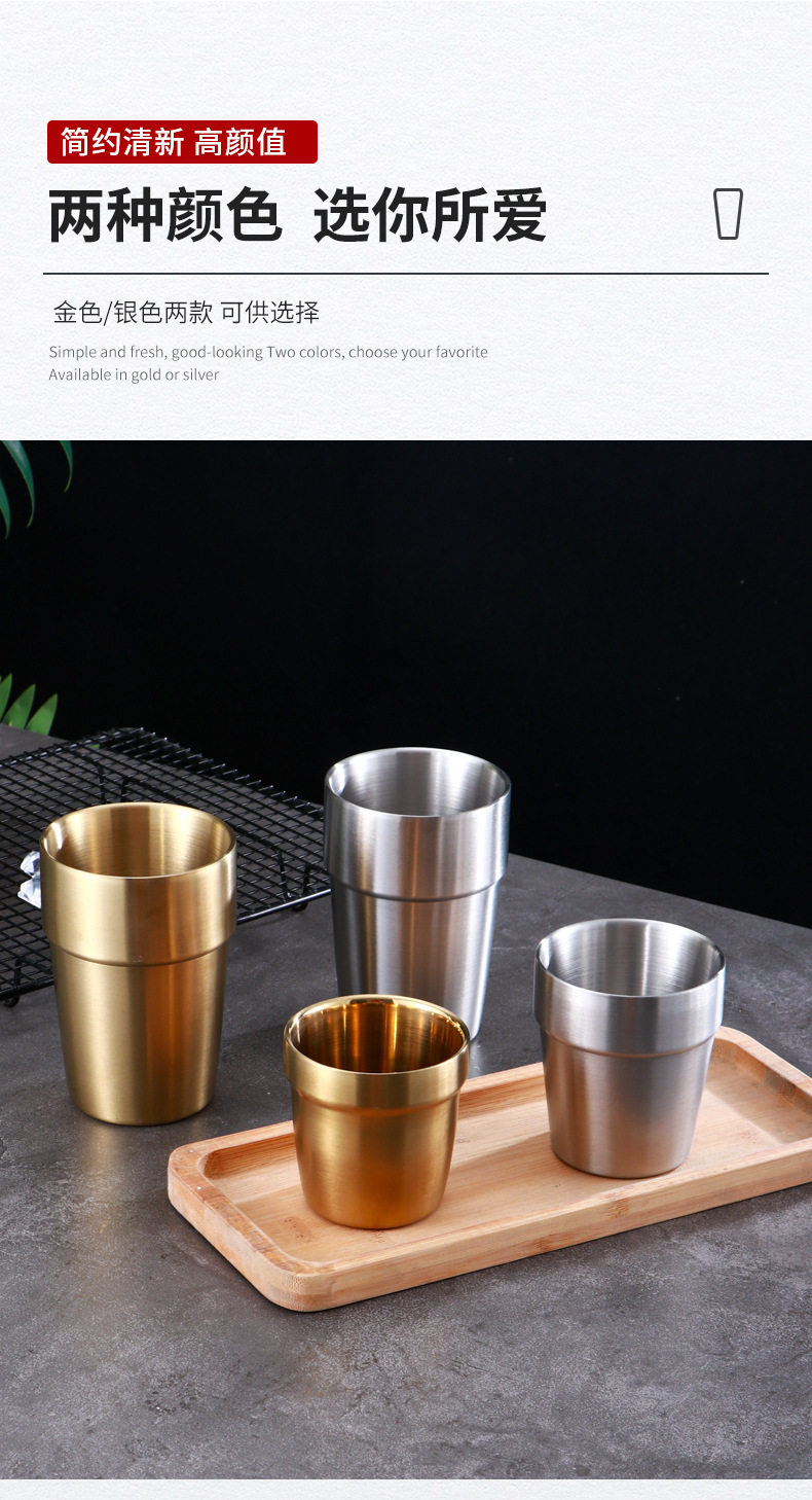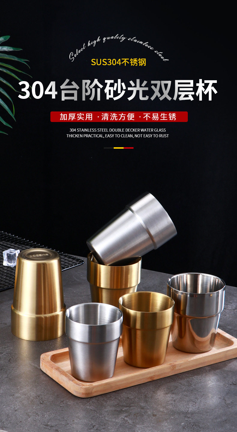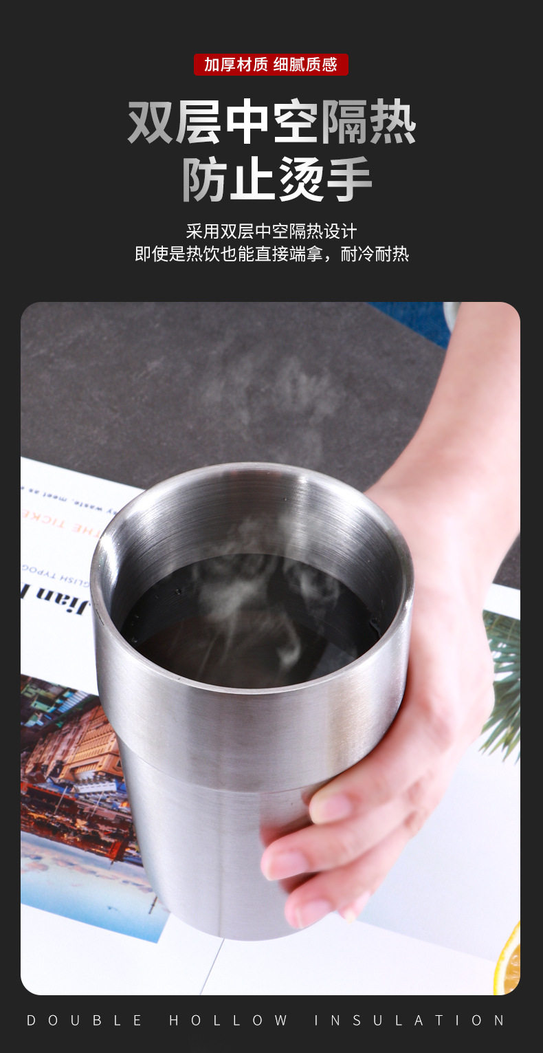 Amazon 304 Double-Layer Stainless Steel Cup Anti-Scalding Step Straight Sand Beer Milk Tea Cup Soju Coffee Cup Outdoor
