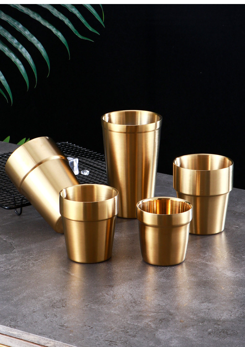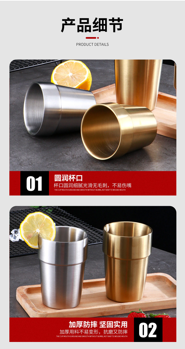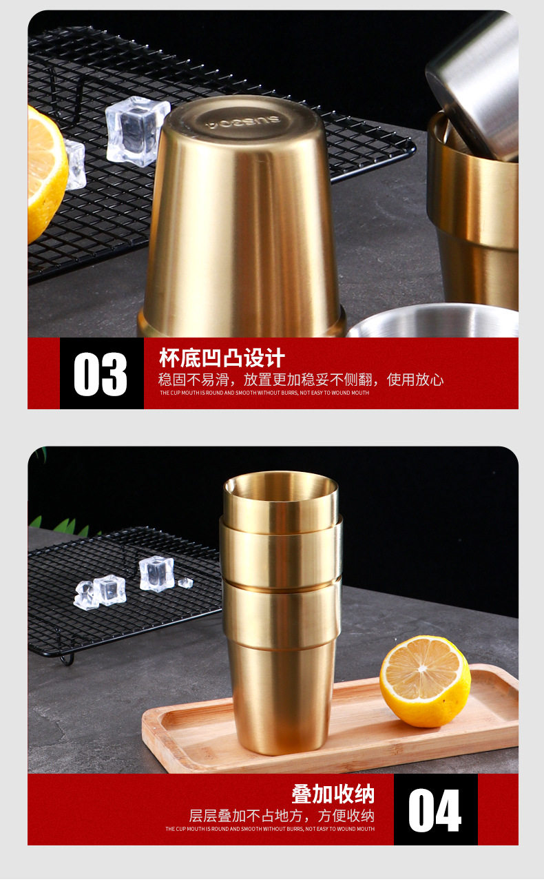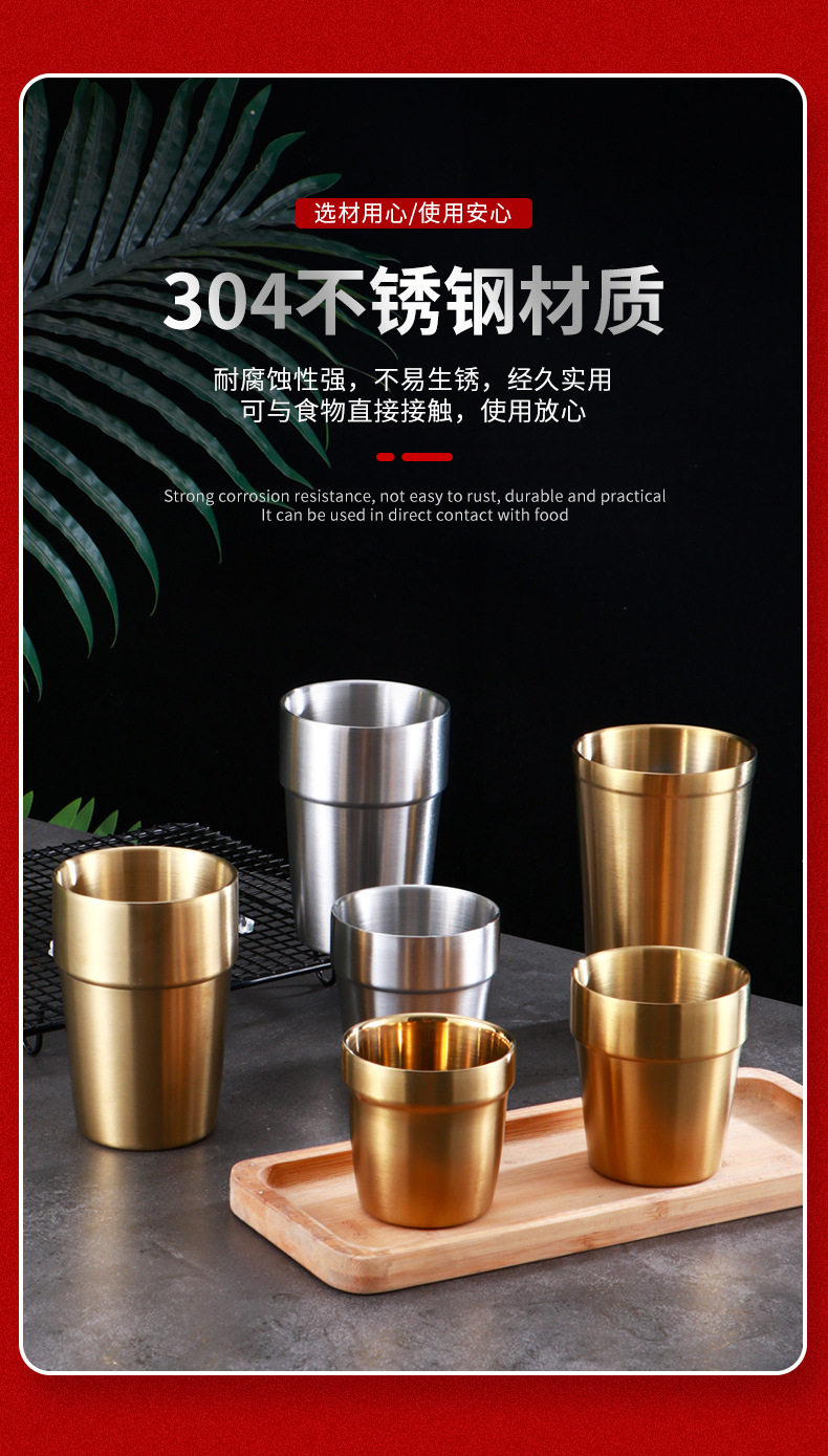 Amazon 304 Double-Layer Stainless Steel Cup Anti-Scalding Step Straight Sand Beer Milk Tea Cup Soju Coffee Cup Outdoor
