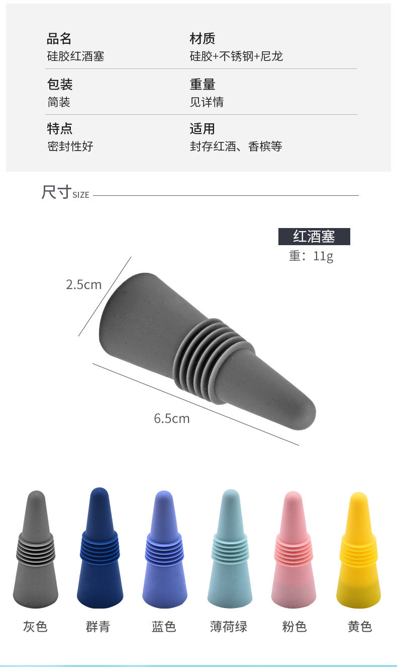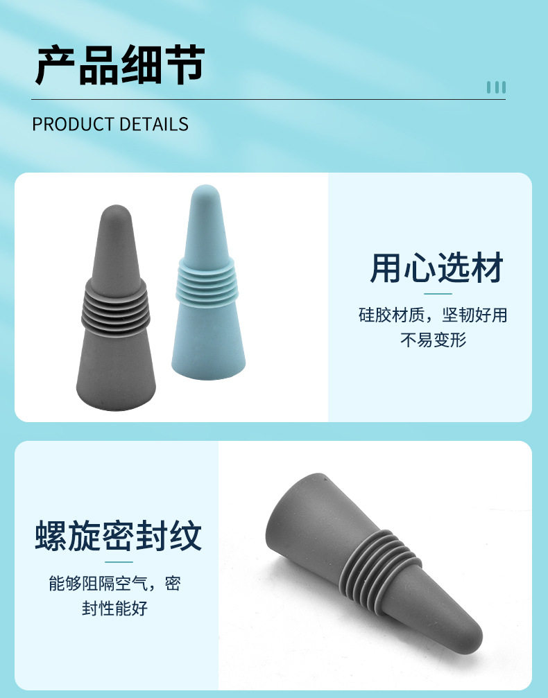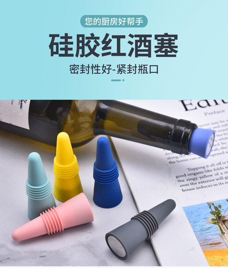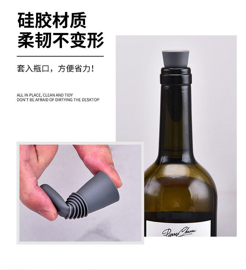 Food grade stainless steel silicone wine bottle stopper leak proof wine bottle stopper wine bottle opener wine decanter set in stock