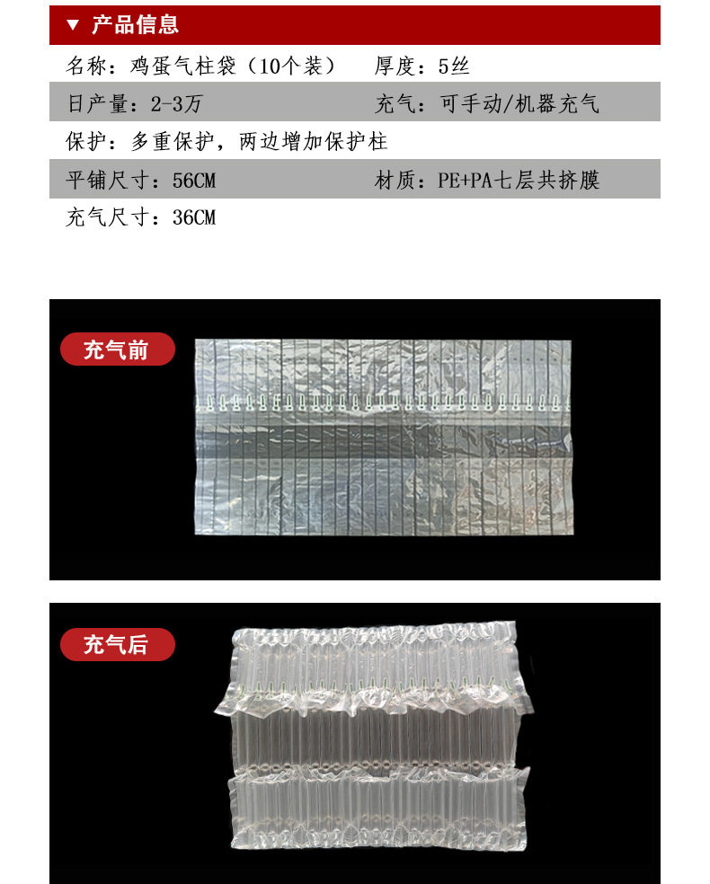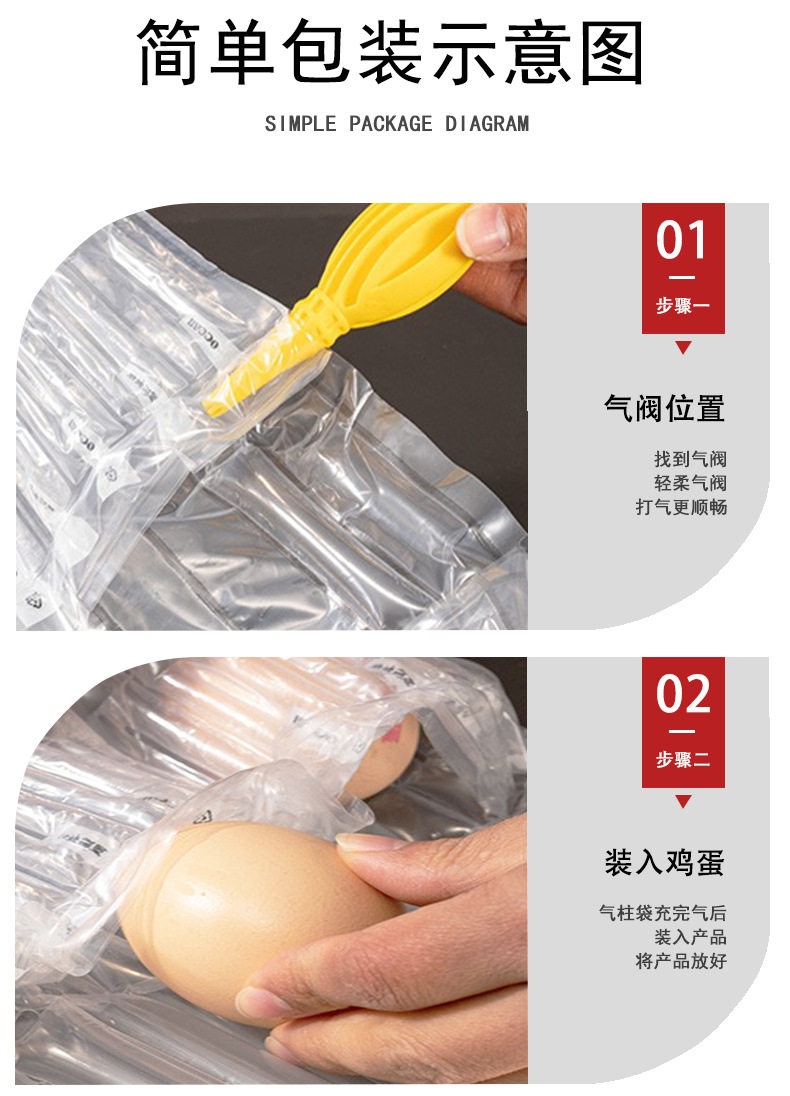 | Specifications and models | 5-column, 10-piece egg air column bag; pe+pa; thickened,6-column 10-piece egg air column bag; pe+pa; thickened |