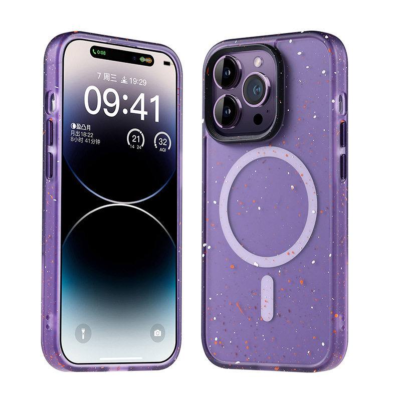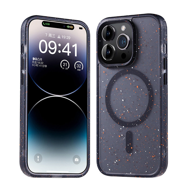 New iPhone16 phone case splash ink design transparent color frame magnetic suction case for Apple 15 mobile phone protective case