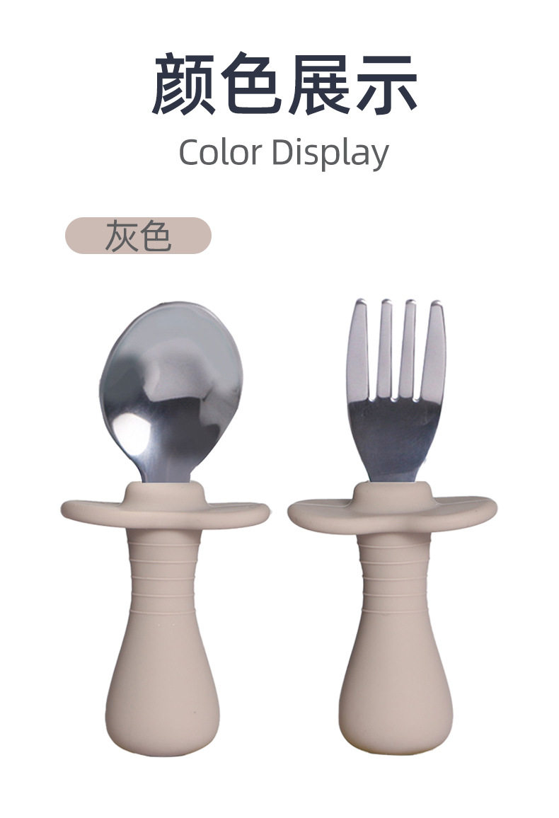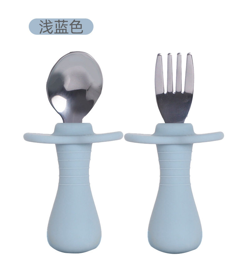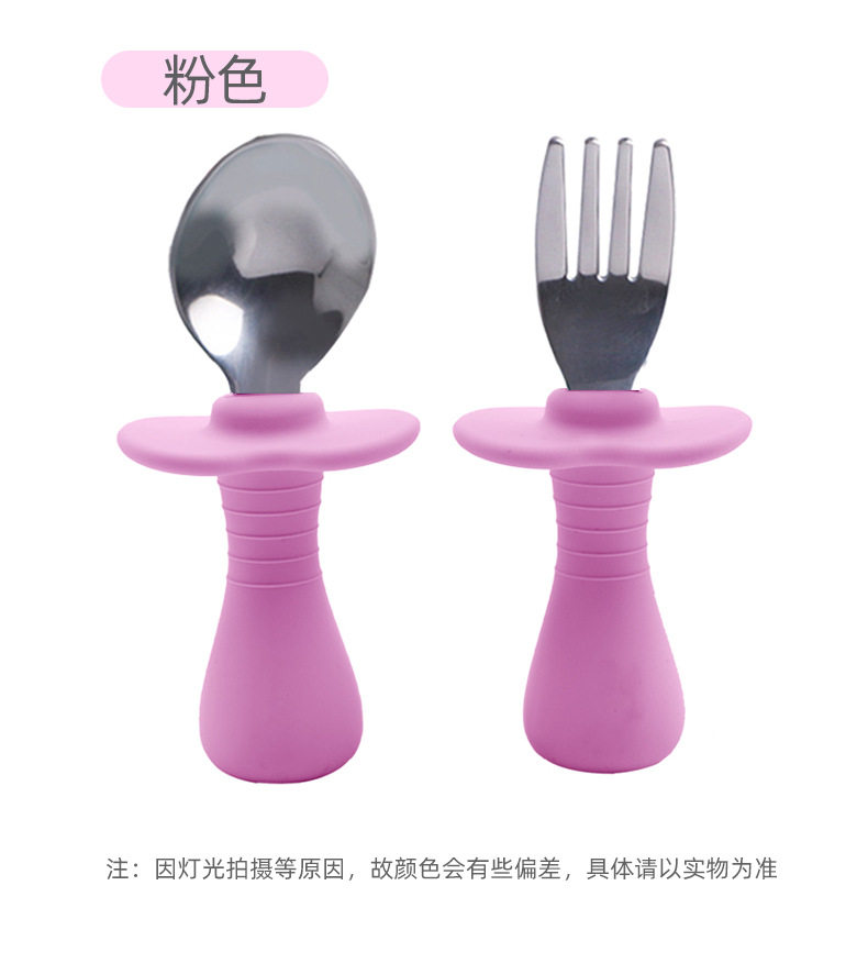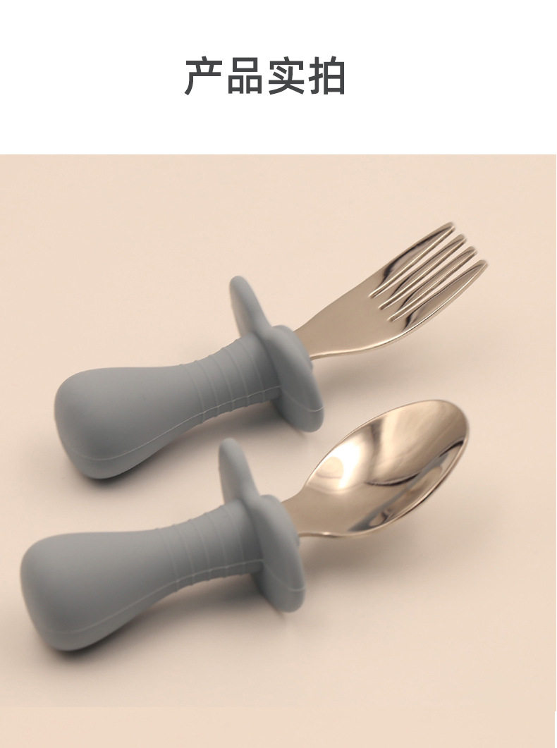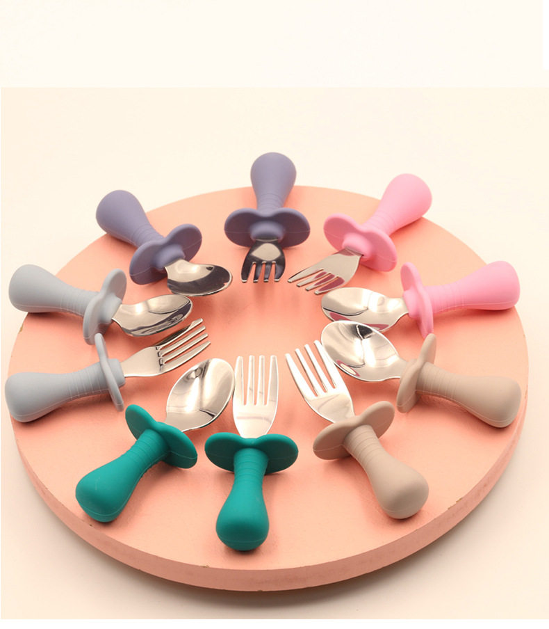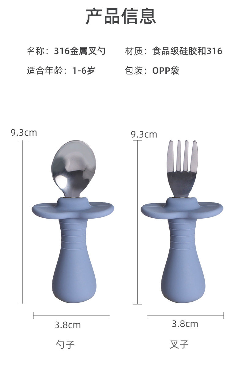 Baby Silicone Fork Spoon Children's Stainless Steel Training Short Fork Spoon Children's Tableware Set Portable Short Handle Fork Spoon