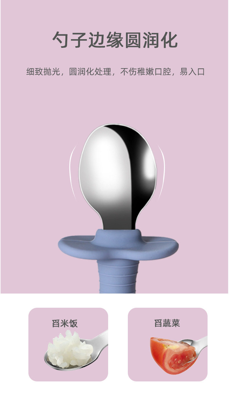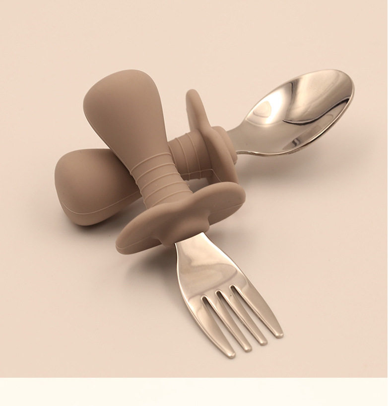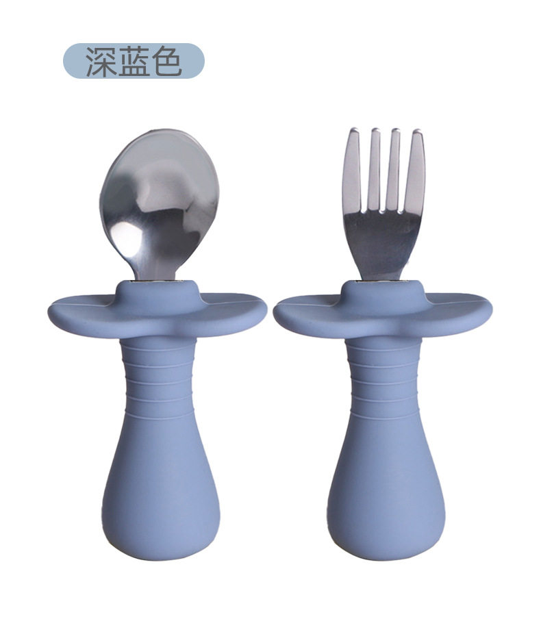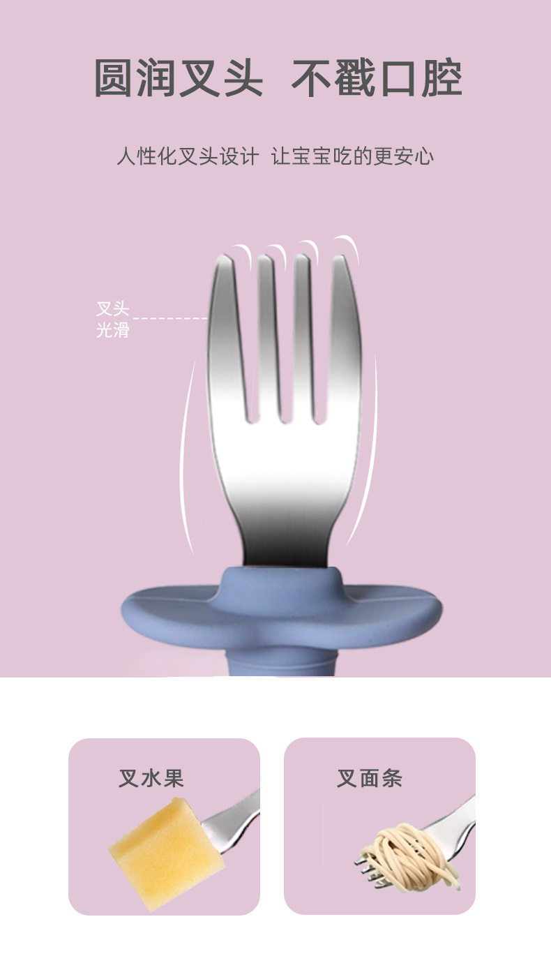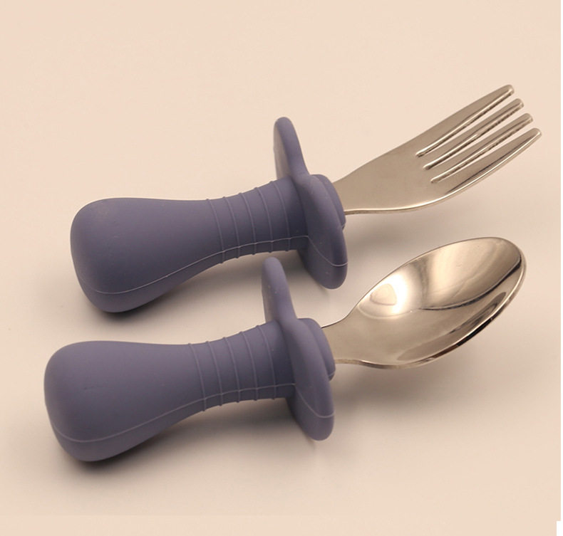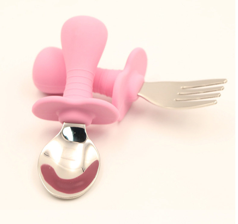 Baby Silicone Fork Spoon Children's Stainless Steel Training Short Fork Spoon Children's Tableware Set Portable Short Handle Fork Spoon