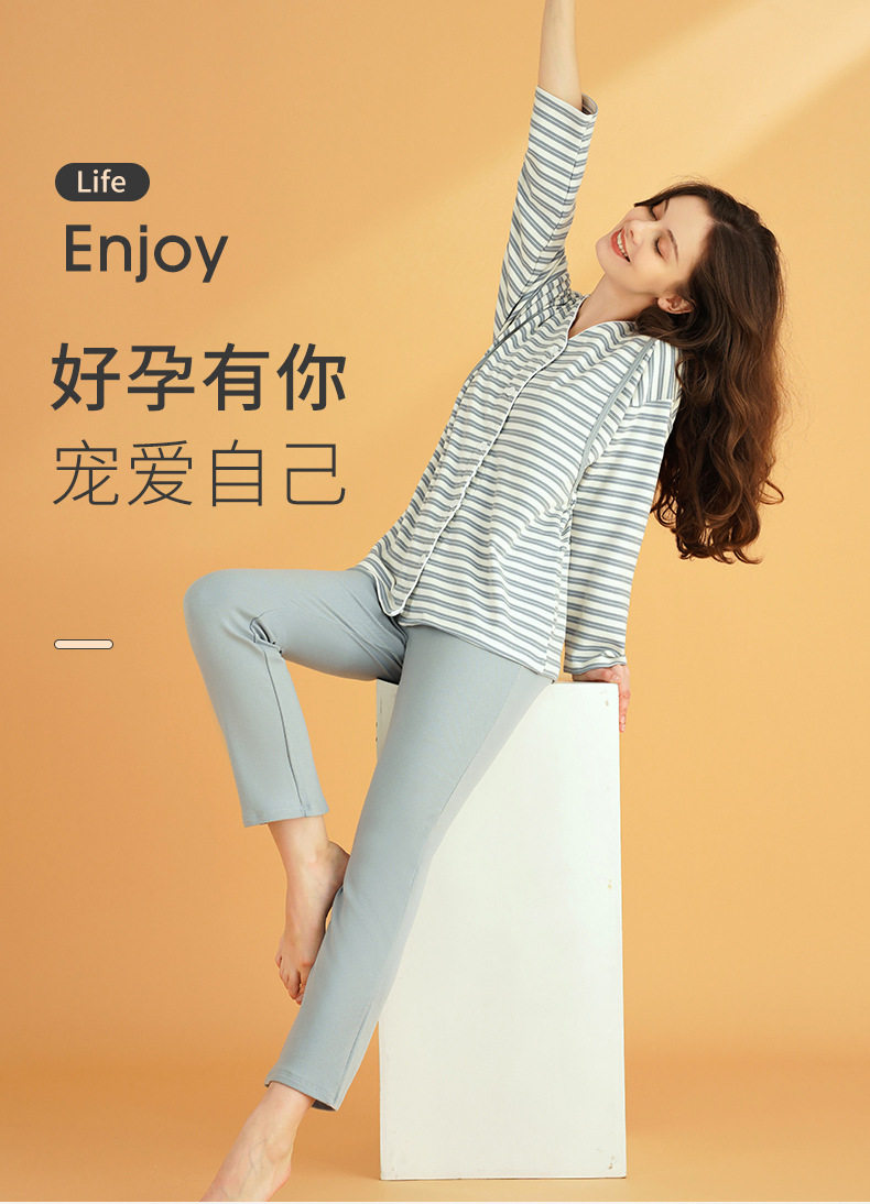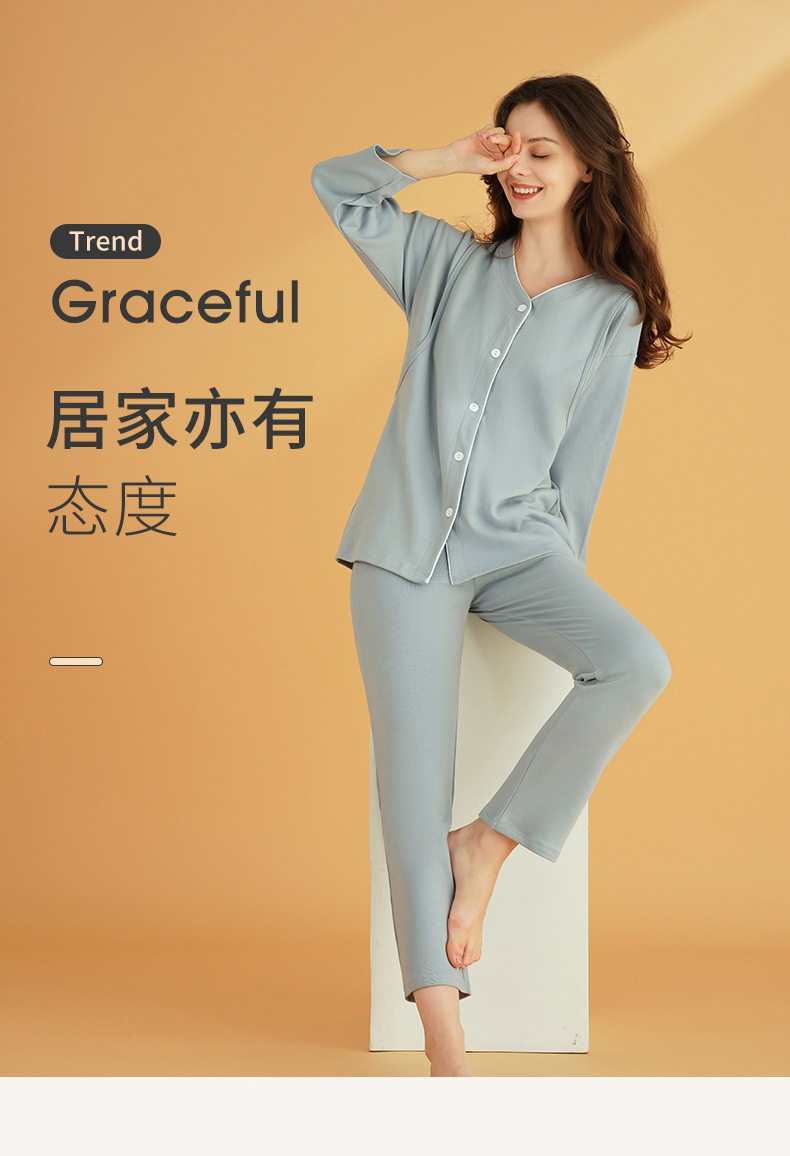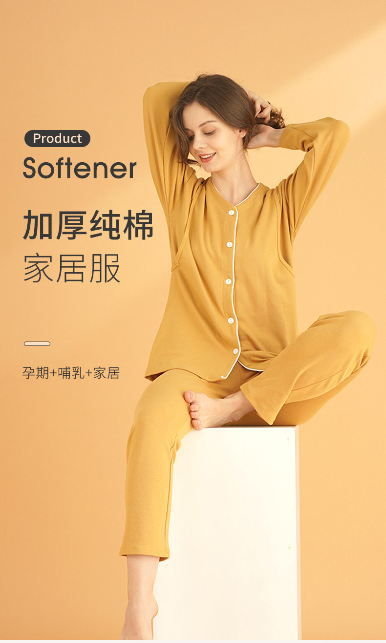Postpartum Clothing Postpartum Cotton Spring, Autumn and Winter Maternity Nursing Pajamas Set Breastfeeding Home Clothes October 11 Thickeneded