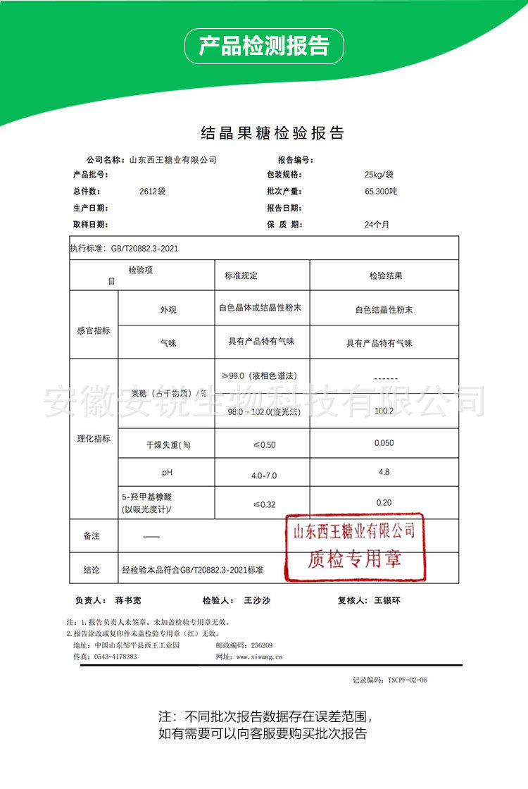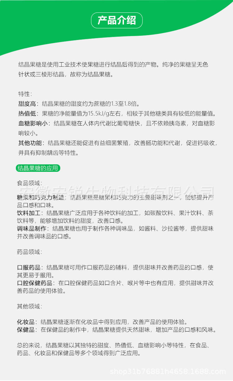 | Specifications and models | 1kg (please contact customer service if you need samples); crystallized fructose |