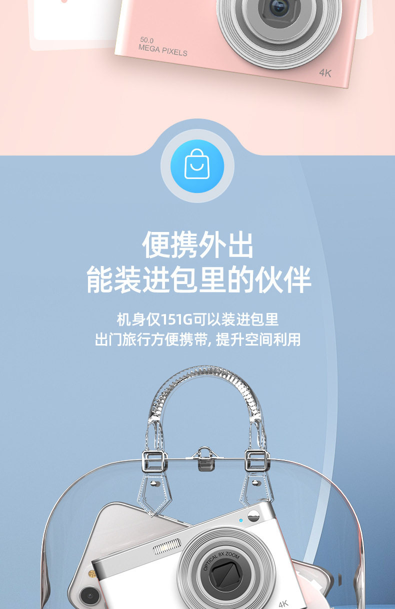 Retractable lens HD digital camera student party portable CCD with small retro card machine