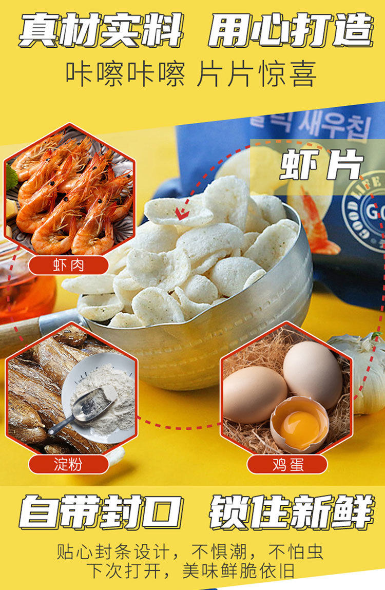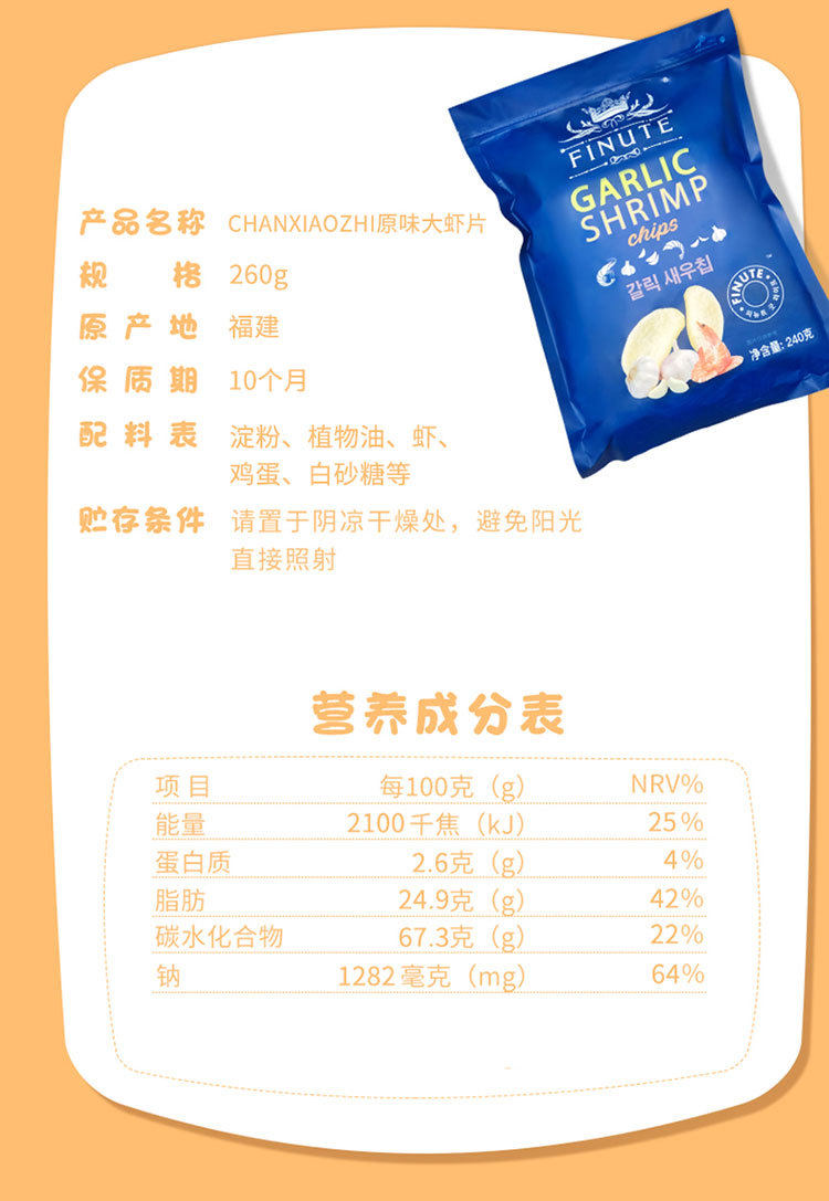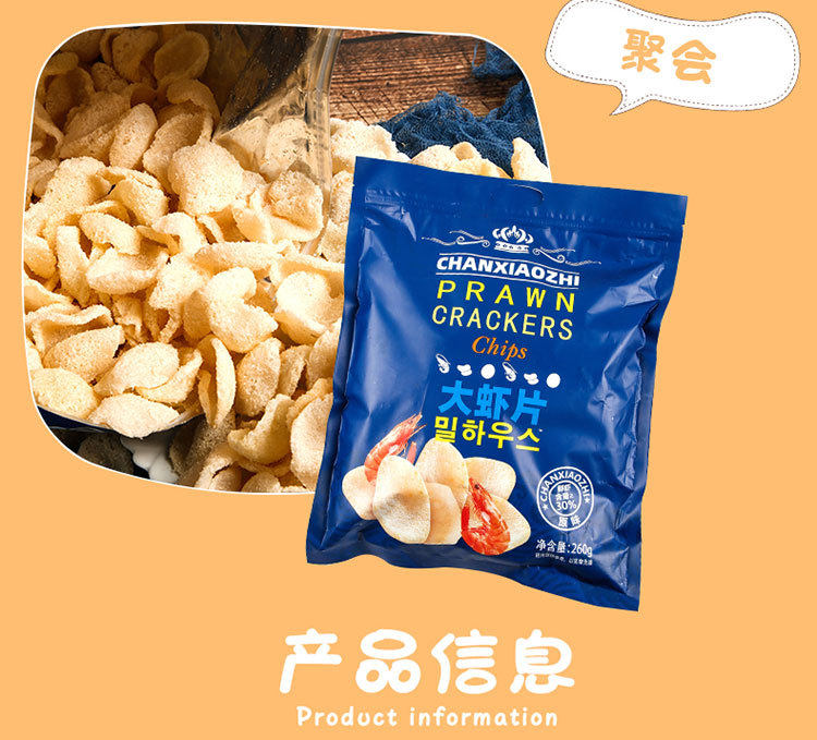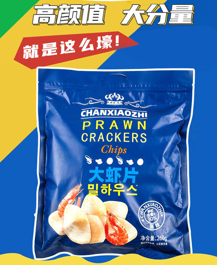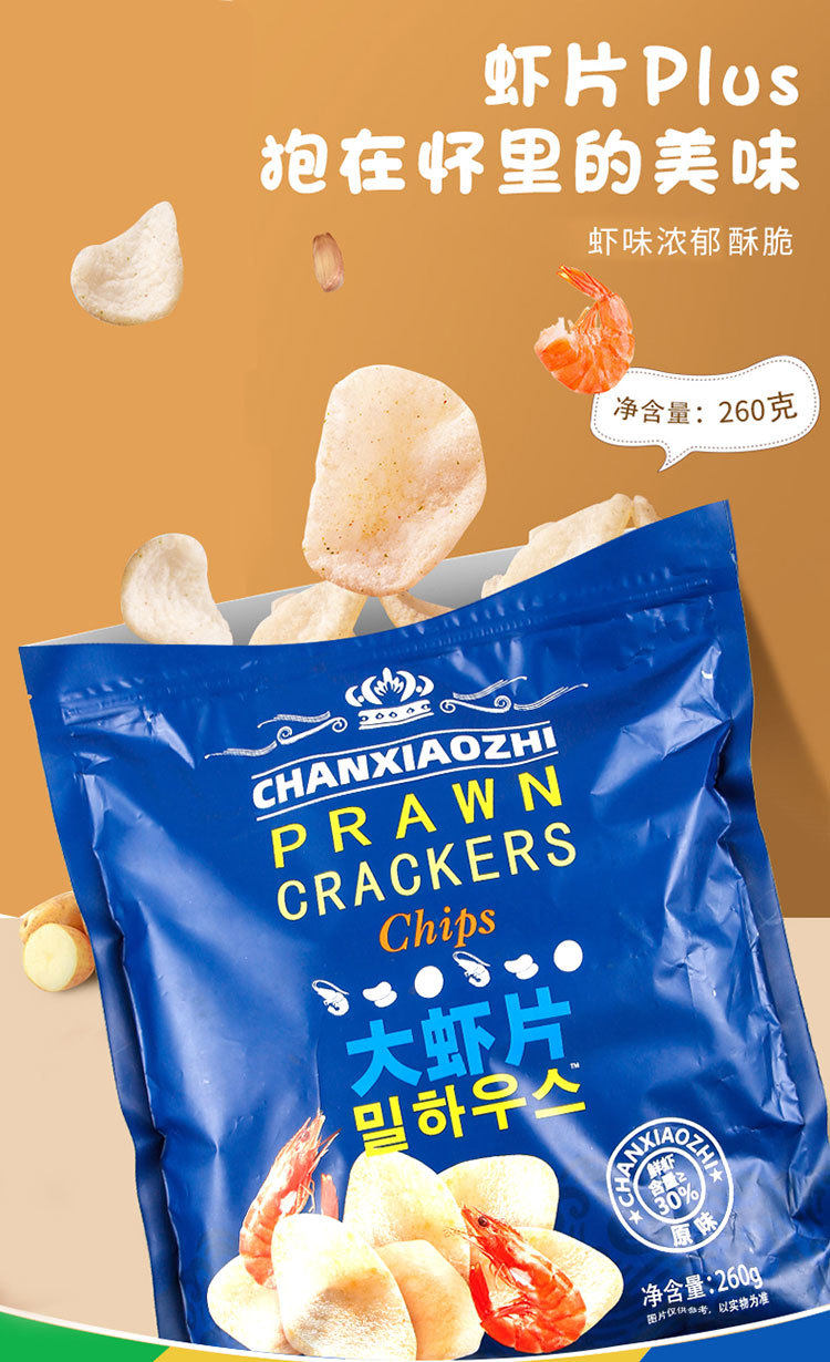 Large shrimp slices 260g large bagged spring outing online popular casual snacks live broadcast WeChat puffed food wholesale