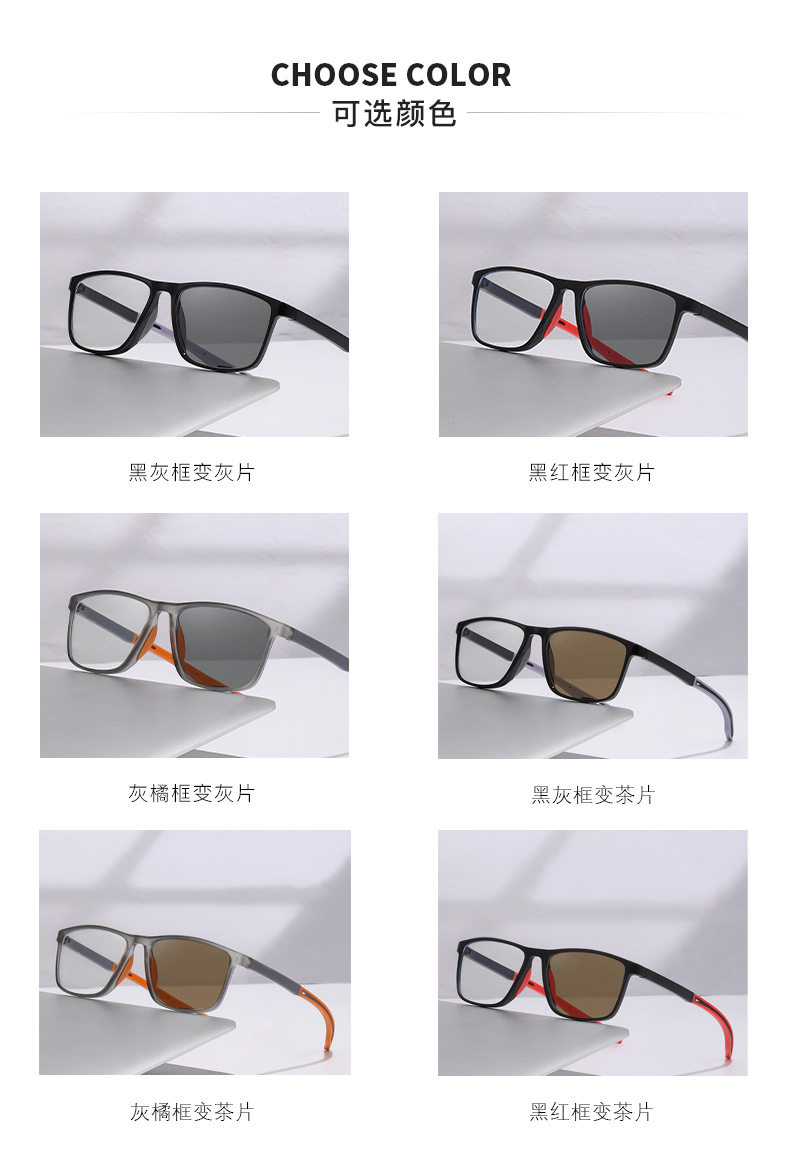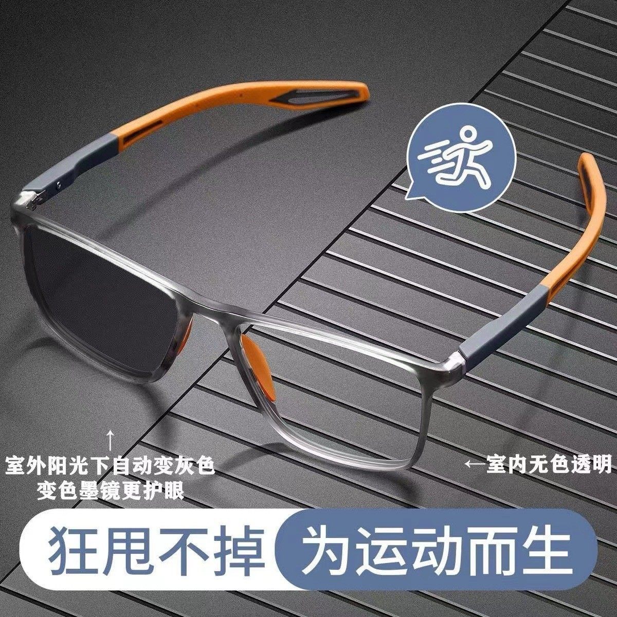Trendy and Cool Sports Photosensitive Color-Changing Tr Glasses Frame Cross-Border Outdoor Anti-Collision, Anti-Falling, Anti-Blue Light, Fashionable Myopia Glasses