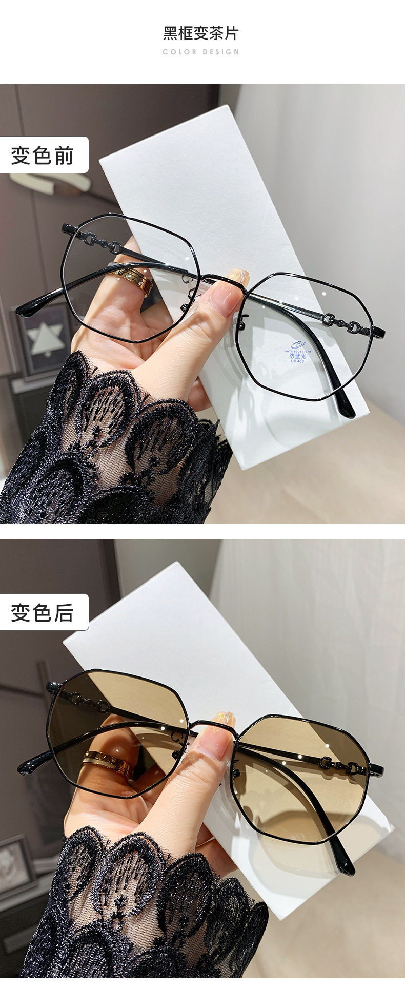 Color-changing anti-blue light glasses student myopia glasses men's and women's glasses frame plain frame face small finished tea myopia glasses