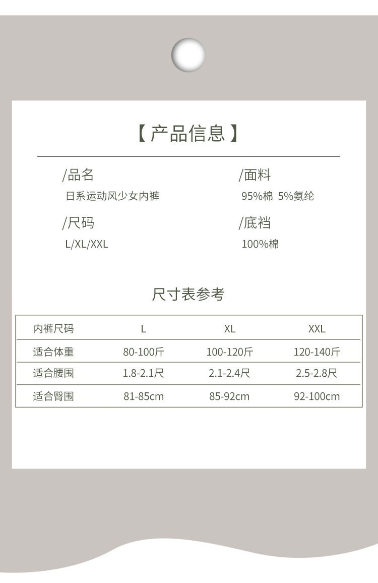 | Crotch lining content | 95% (inclusive)-100% (Exclusive) |