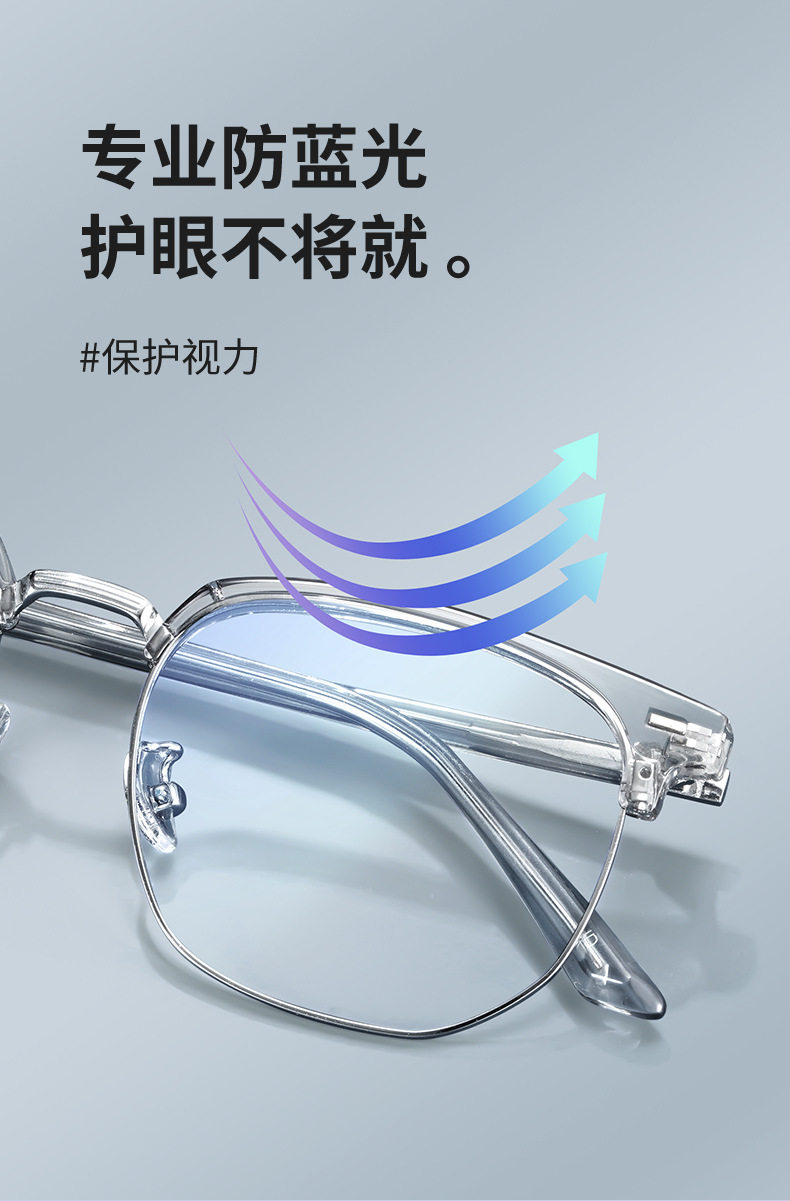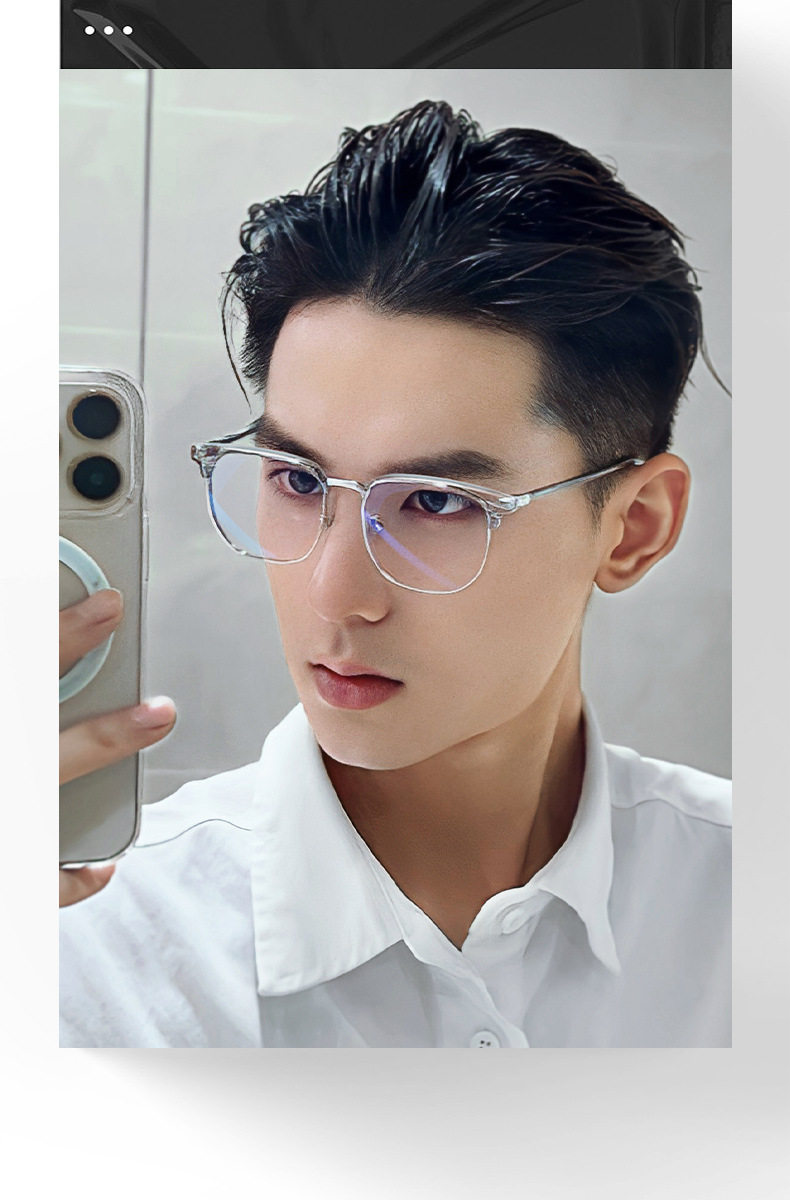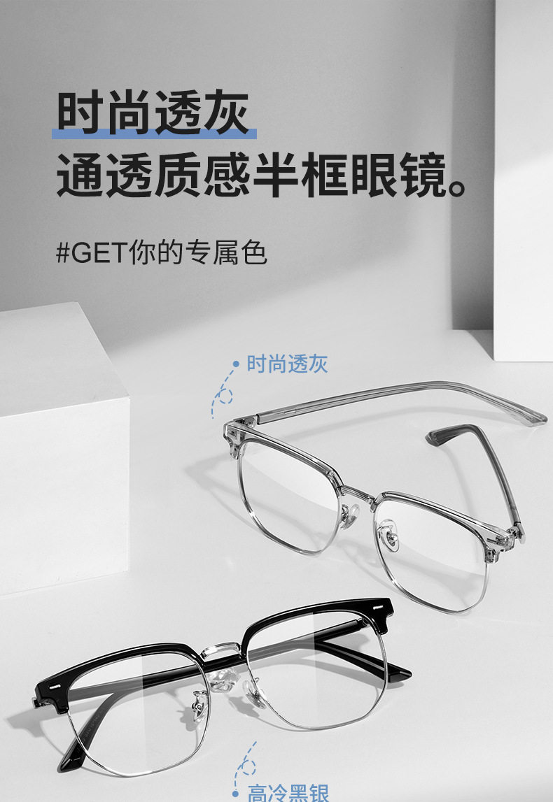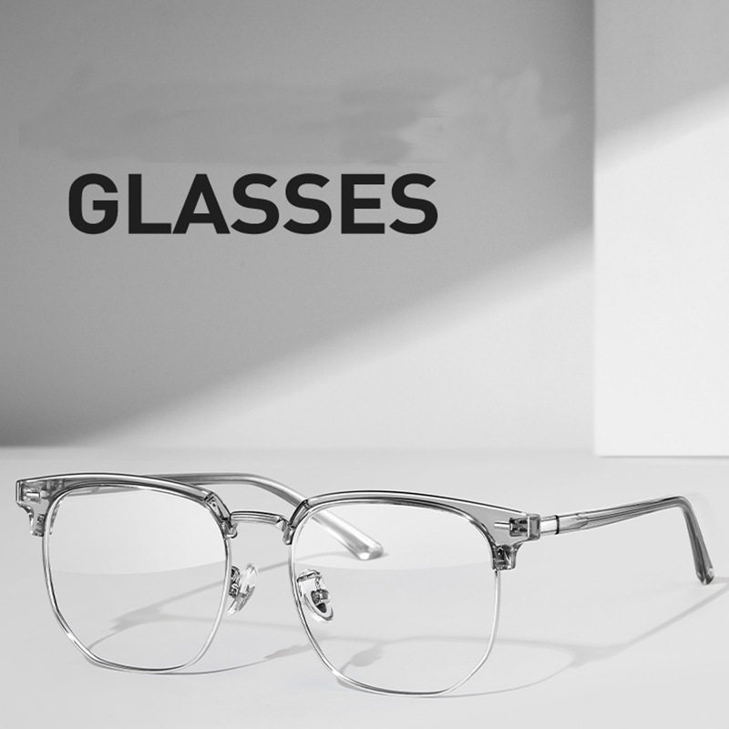 Mirrors Half-frame Short-sighted Eye Frame Men's Transparent Coconut Grey Eyebrow Frame Anti-blue Light Eye Plain Mirror Women's 2204