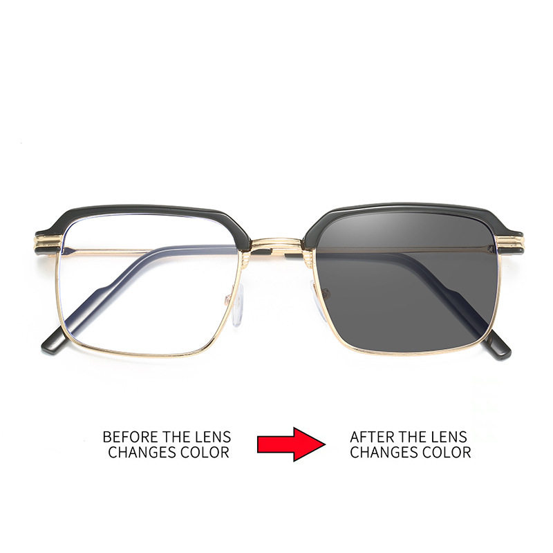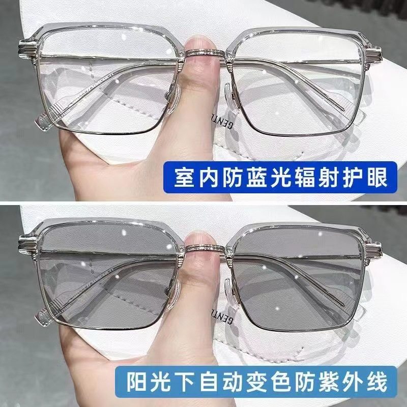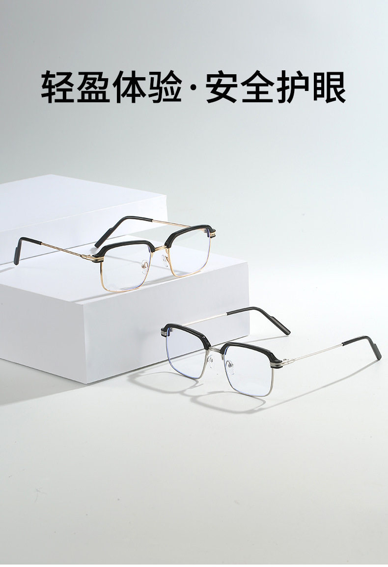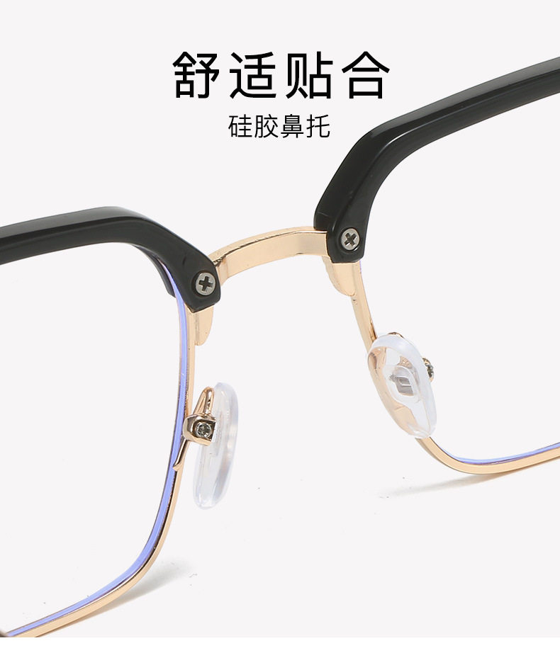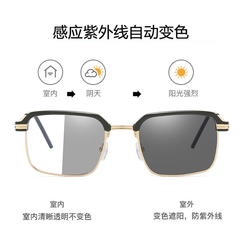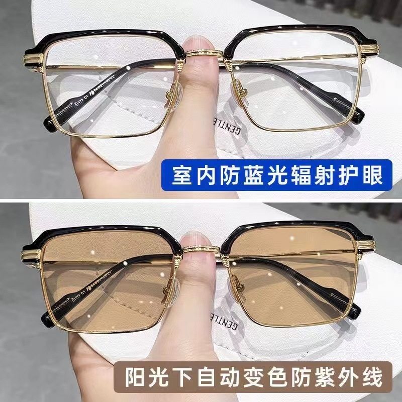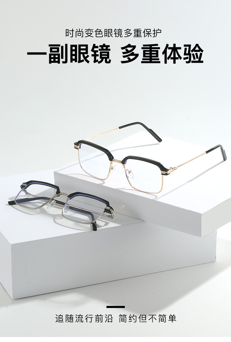 Anti-blue light metal fashion reading glasses men's business simple glasses frame retro half frame color changing flat mirror wholesale