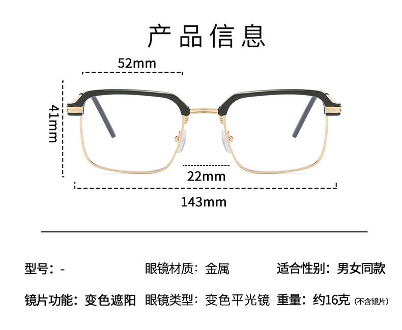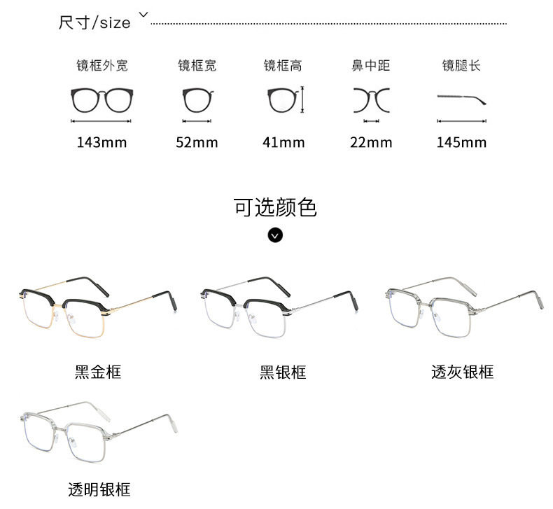 | Frame color | Black gold frame,Black silver frame,Translucent gray silver frame,Transparent silver frame |
