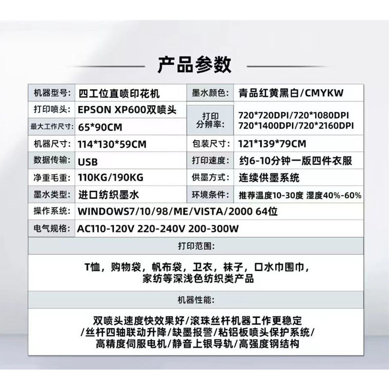 | Specifications | Six-slot clothing direct-injection printing machine deposit |