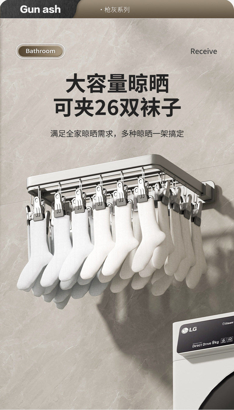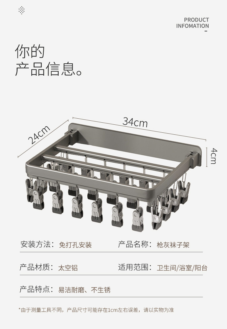 | Color | Gun gray upgrade 12-clip windproof socks rack (dual-use),Gun gray upgrade 20-clip windproof socks rack (dual-use),Gun gray Standard 26 socks rack (dual-use),Gun Gray upgraded 26-clip windproof socks rack (dual-use),Gun gray 30cm storage rack + upgrade 12 socks clip (dual-use),Gun gray 40cm storage rack + upgrade 12 socks clip (dual-use),Gun gray 30cm washing machine rack (dual-use),Gun gray 40cm washing machine rack (dual-use) |