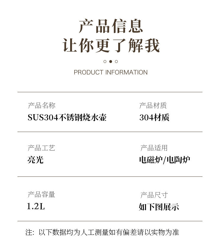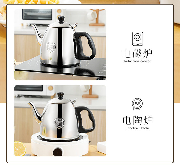 Thick 304 stainless steel kettle electric ceramic stove flat bottom Kettle Teapot household Kettle Teapot 1.2L