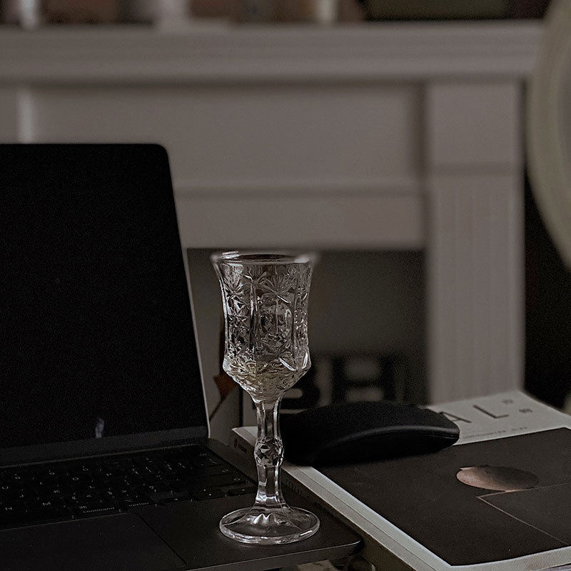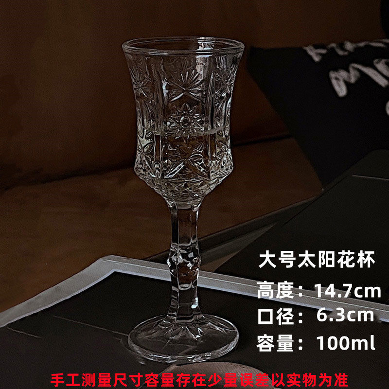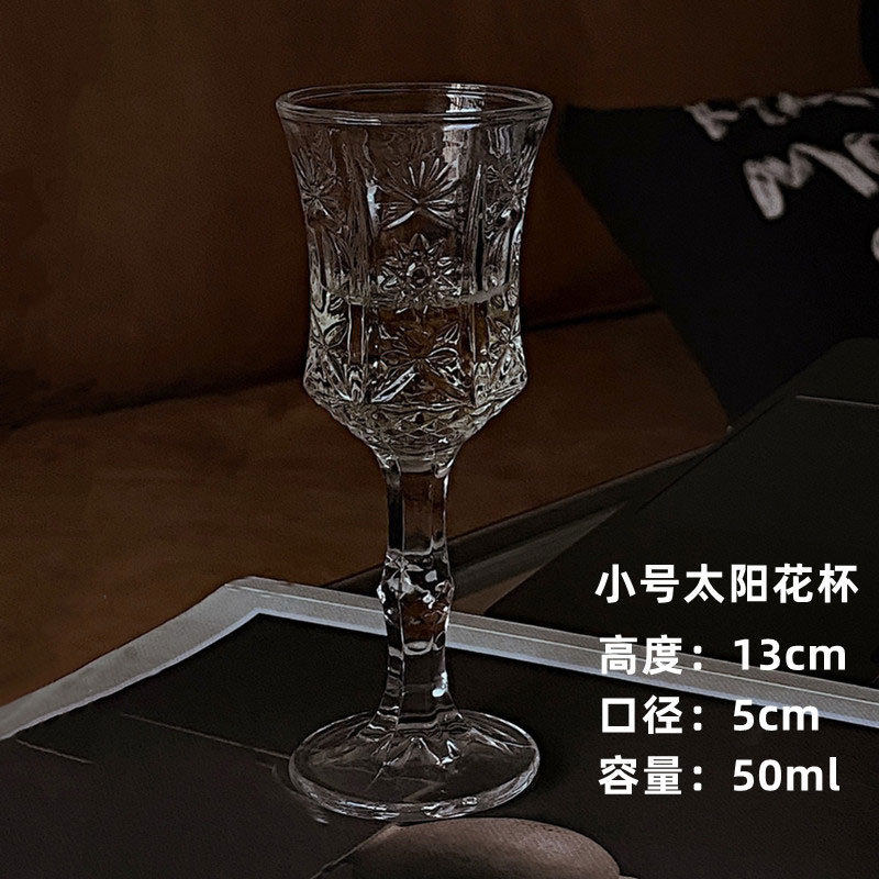 Vintage ins-style goblet horn embossed red wine glass simple waist wine champagne glass cold drink cup