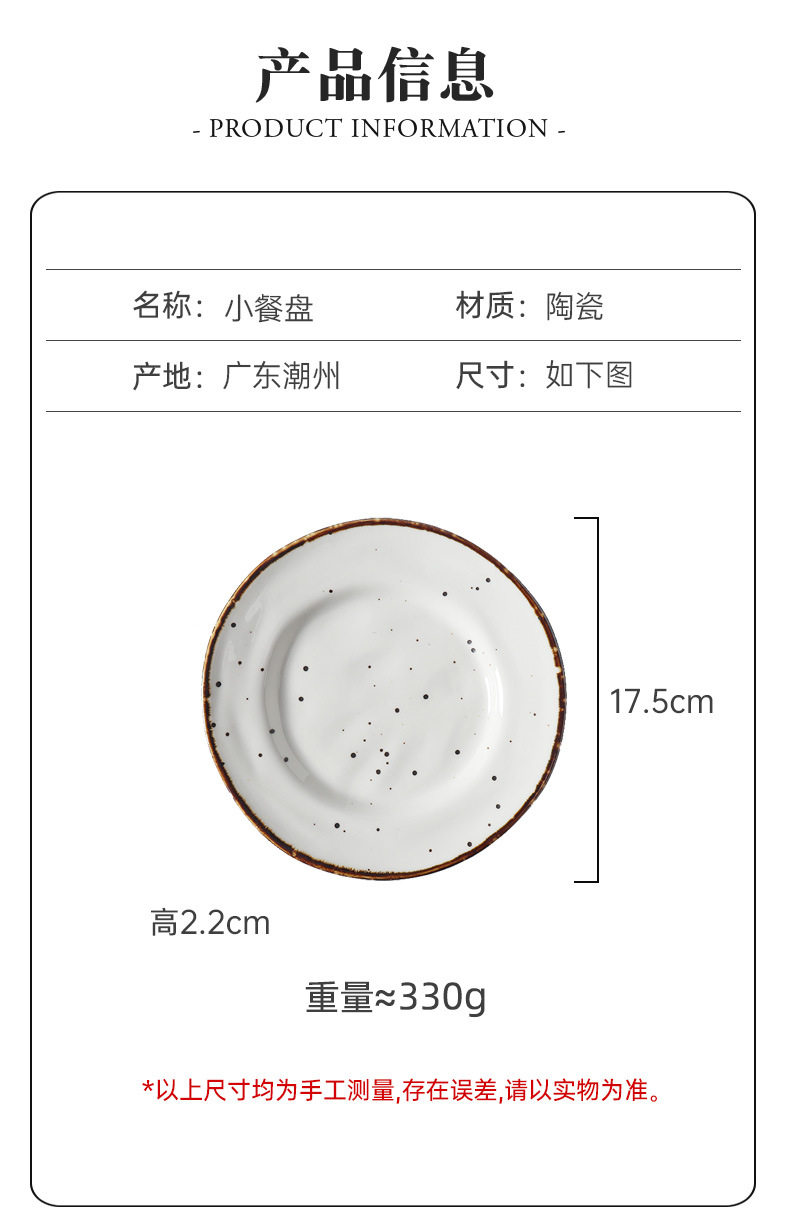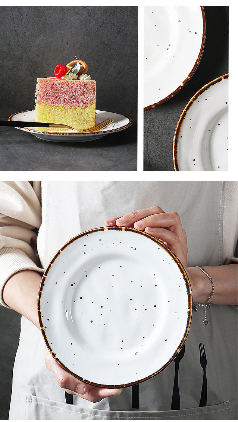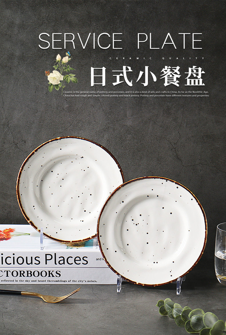 Cross-Border Wholesale Japanese Tableware Household Flat Plate Ceramic Plate Dessert Plate Round Dish Plate Steak Plate Ceramic Dinner Plate