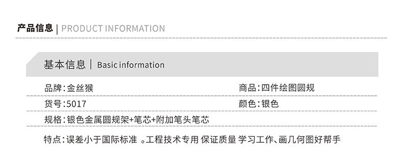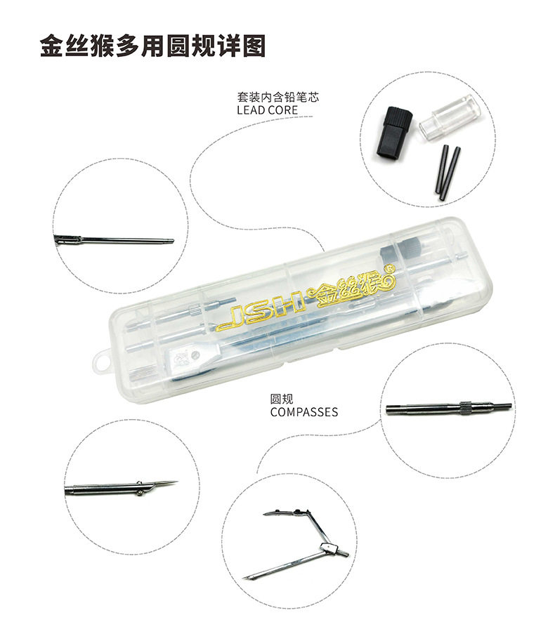 Golden Monkey Metal Compass Set with Duckbill Pen Multifunctional Junior High School Students Examination Drawing Professional Cartographer