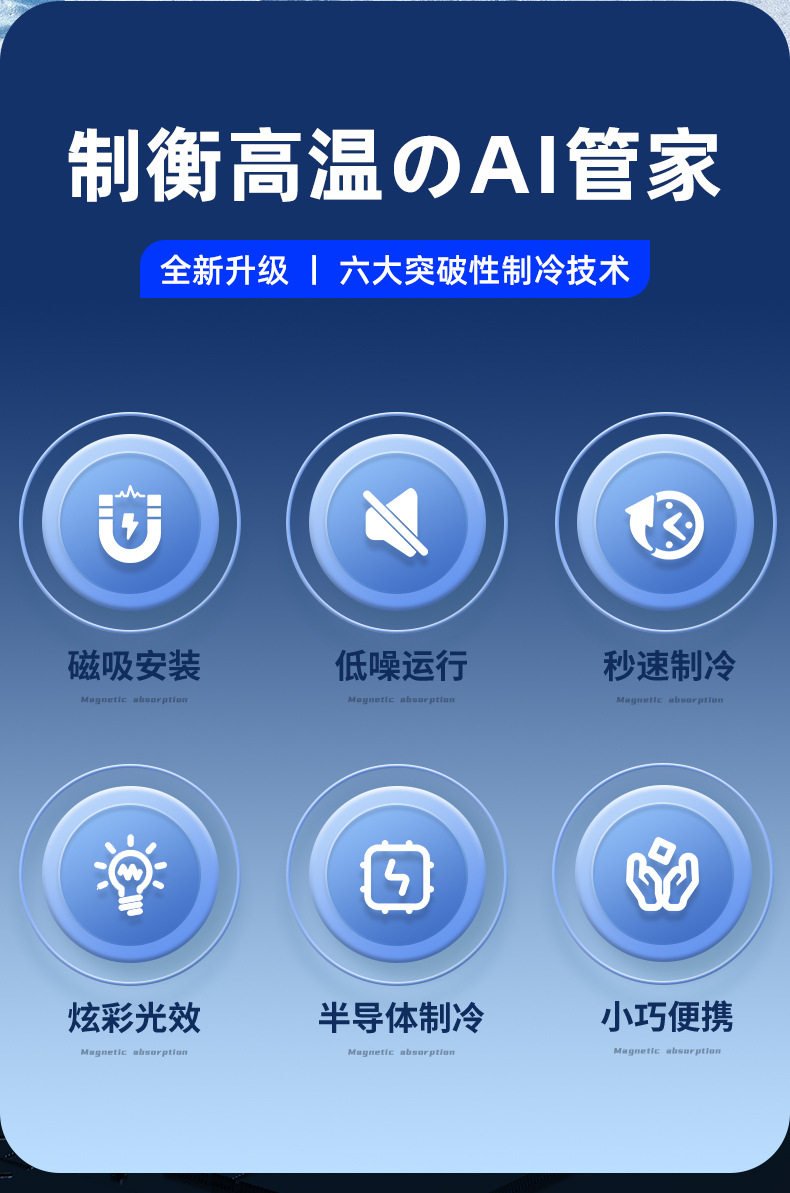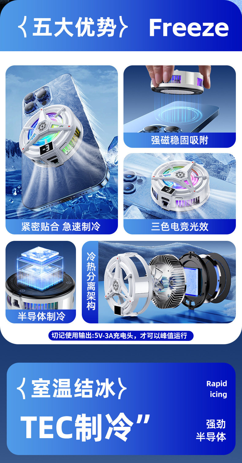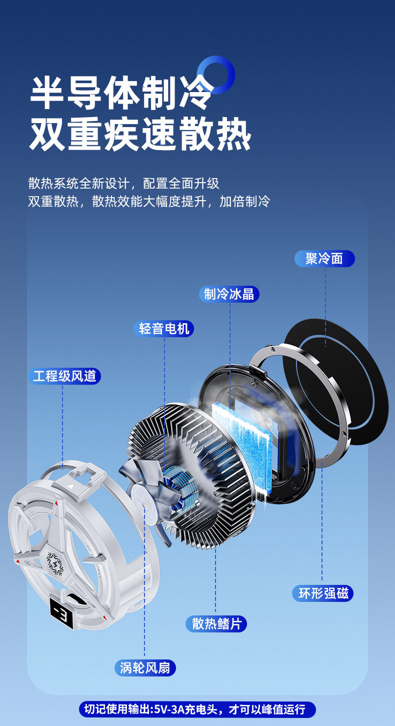 New magnetic semiconductor mobile phone radiator TL07X76 icing digital display strong heat dissipation artifact factory direct sales