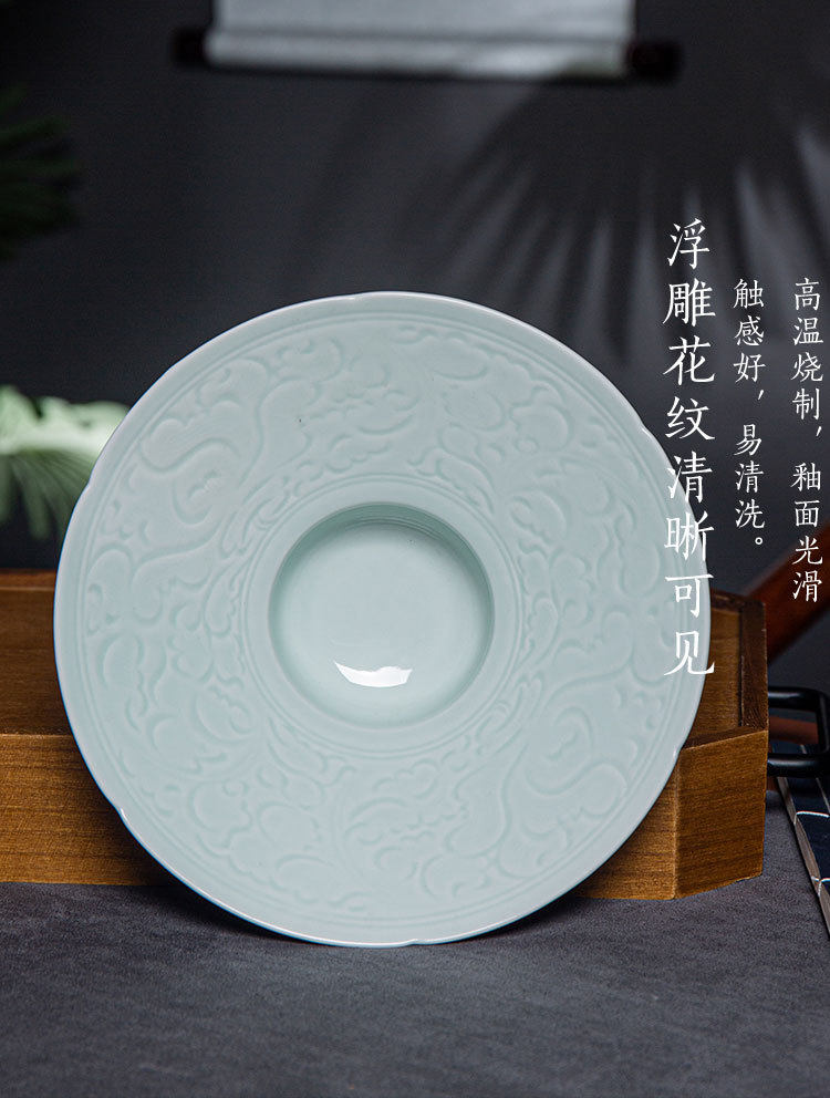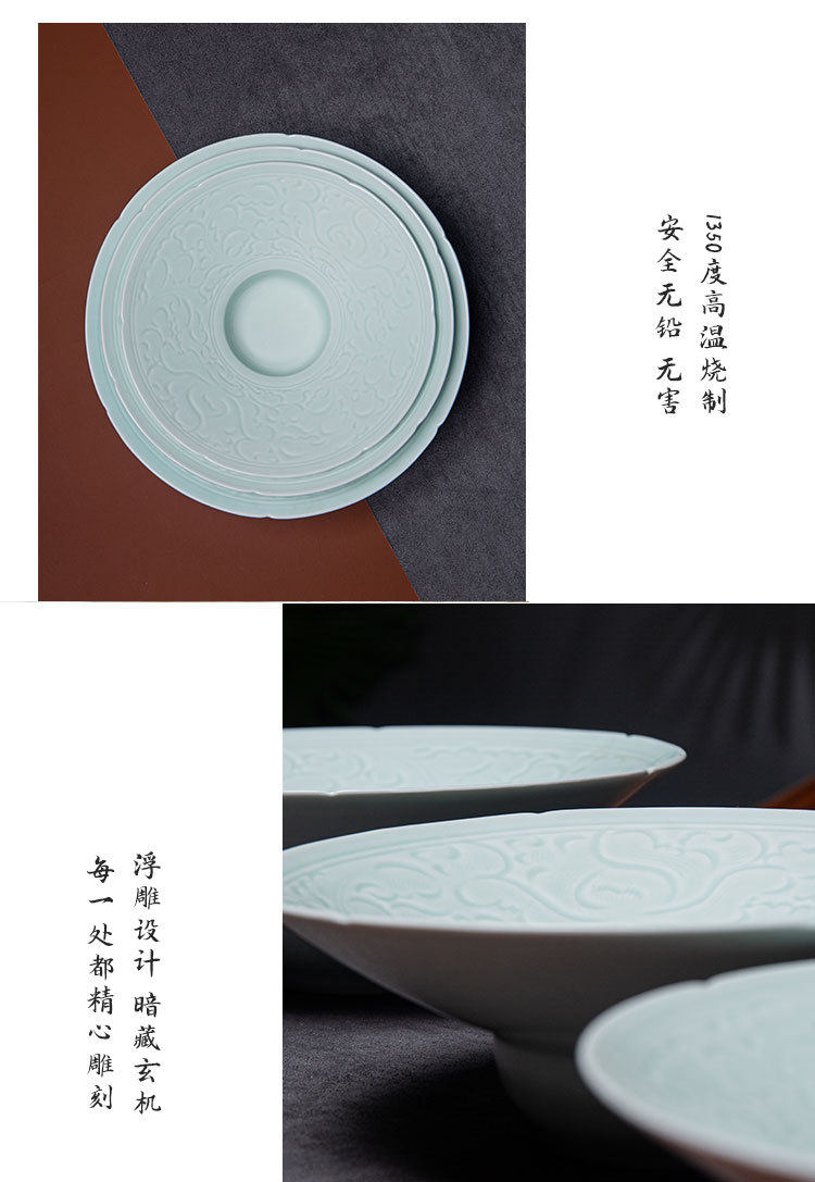 Jingdezhen Celadon Hotel Restaurant Commercial Retro Straw Hat Plate Western Dinner Plate Disc Dim Dispel Artistic Conception Plate Tableware
