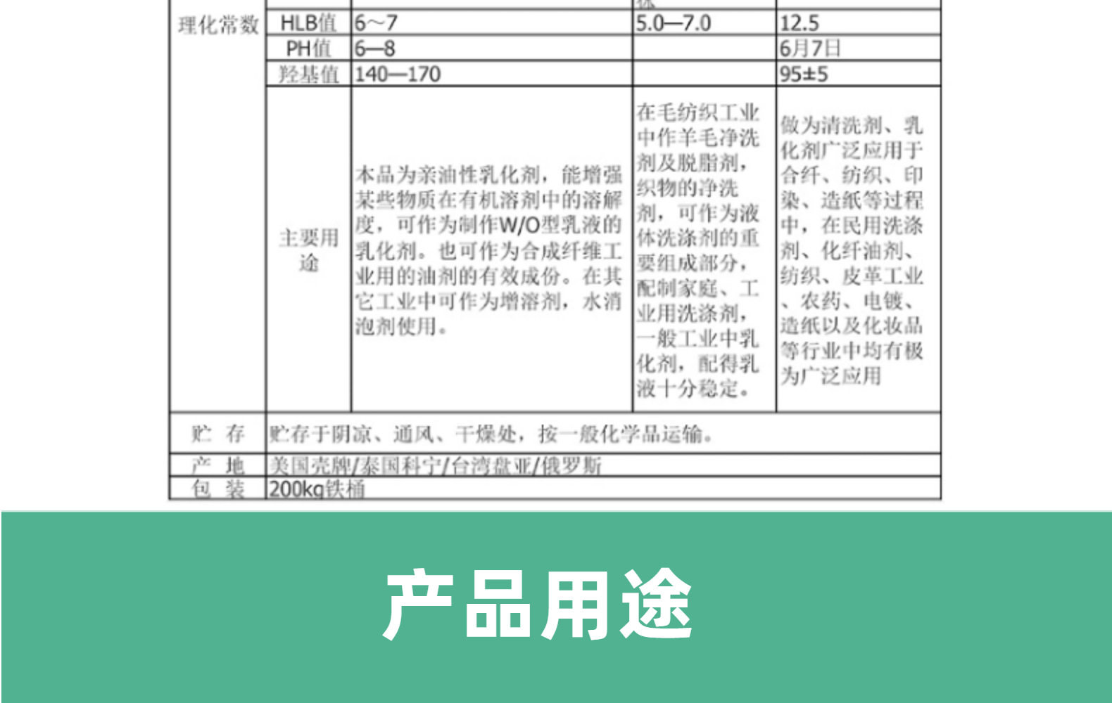 | Scope of use and use | Active agents, emulsifiers, etc |