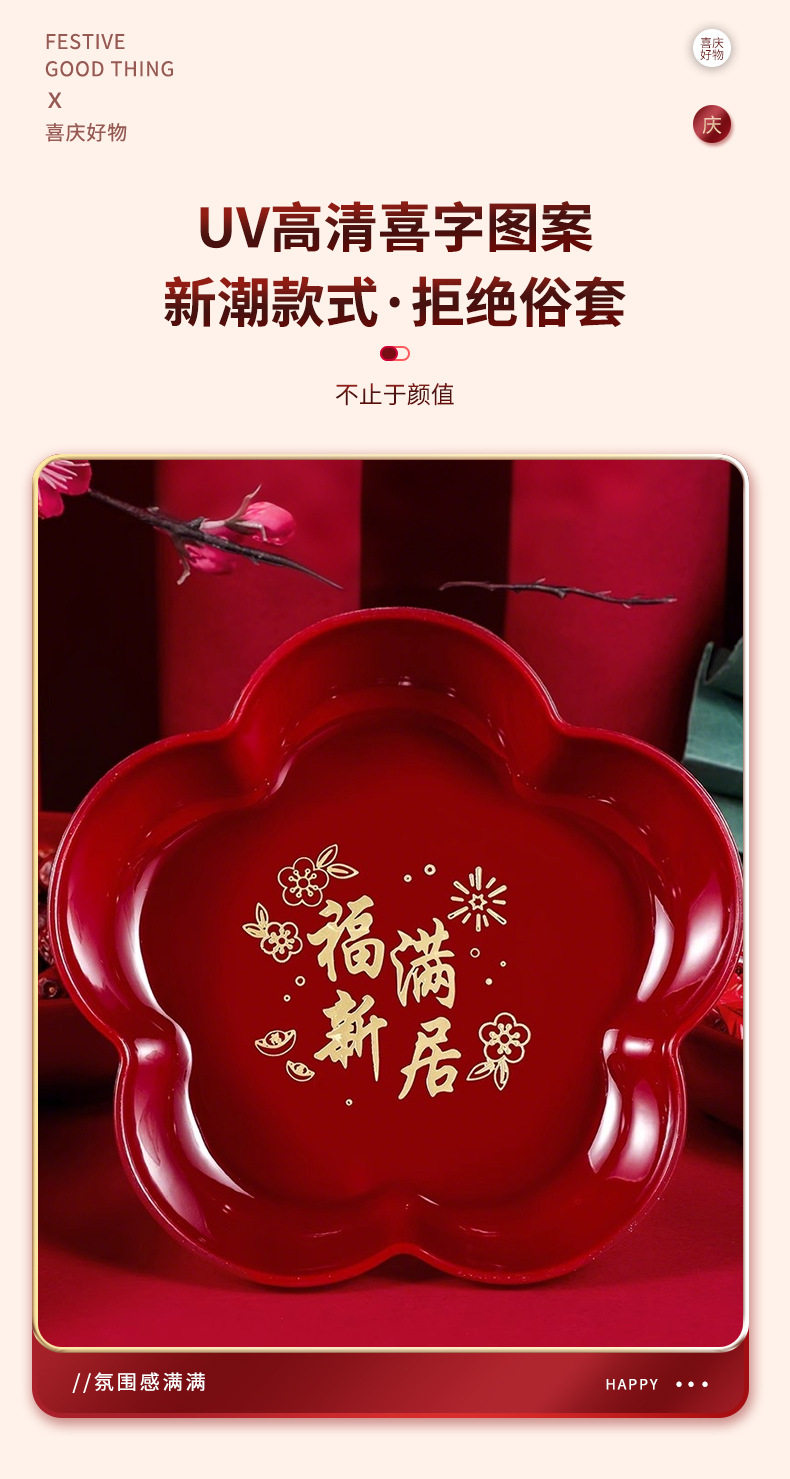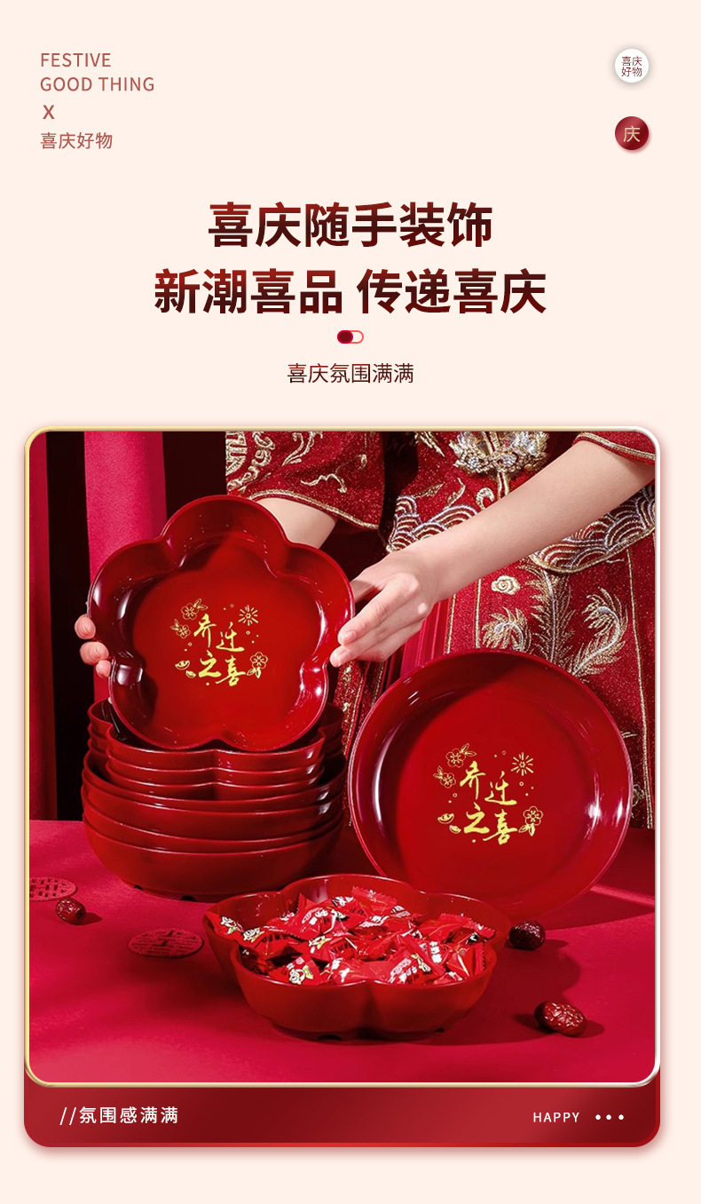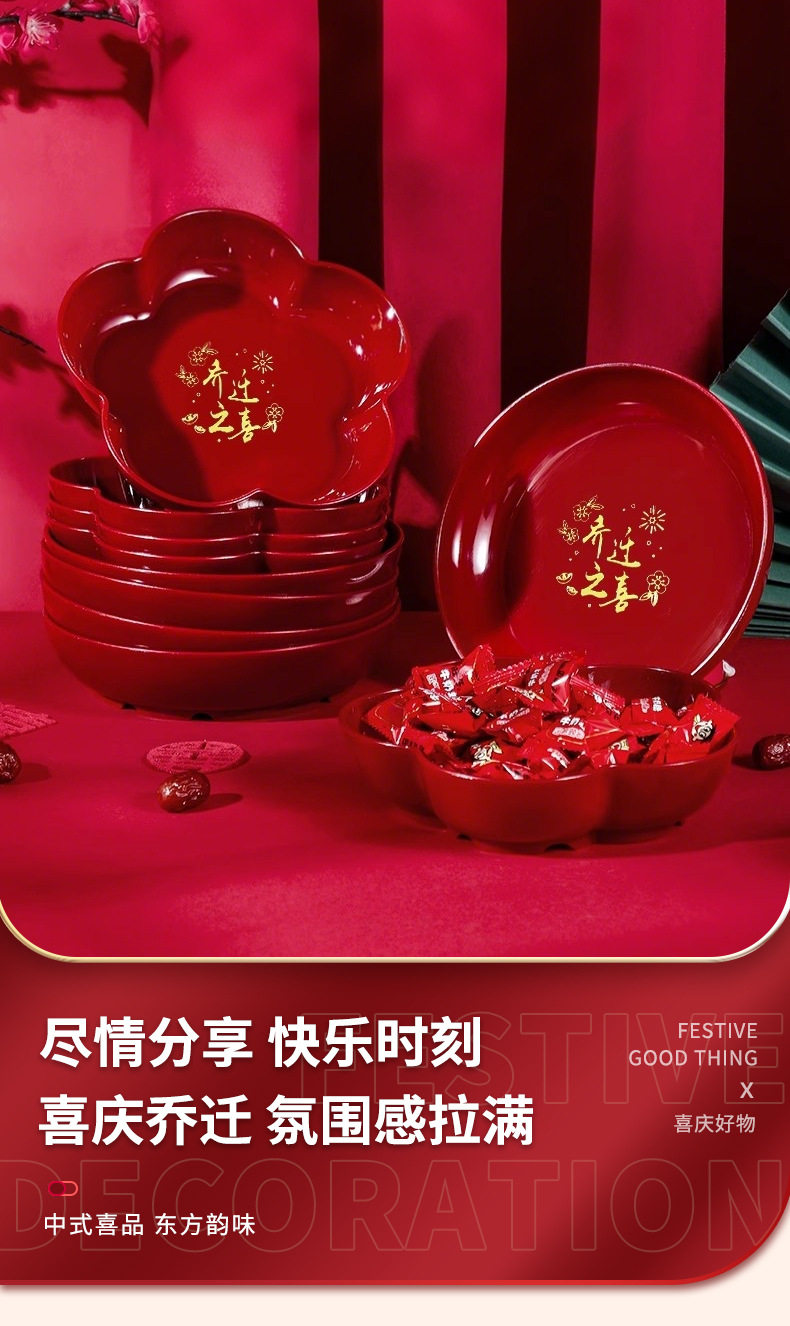 Housewarming new home fruit plate Red moving home tableware new home decoration opening new year fruit plate snack plate