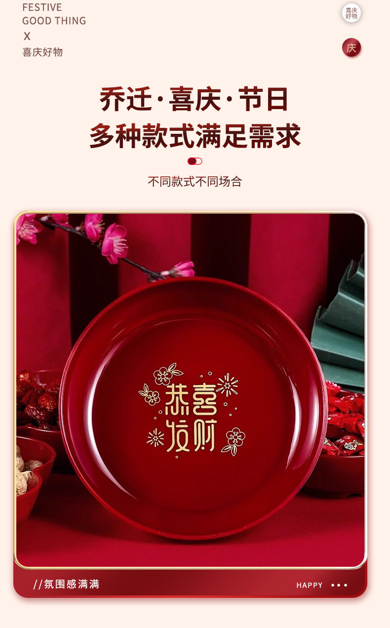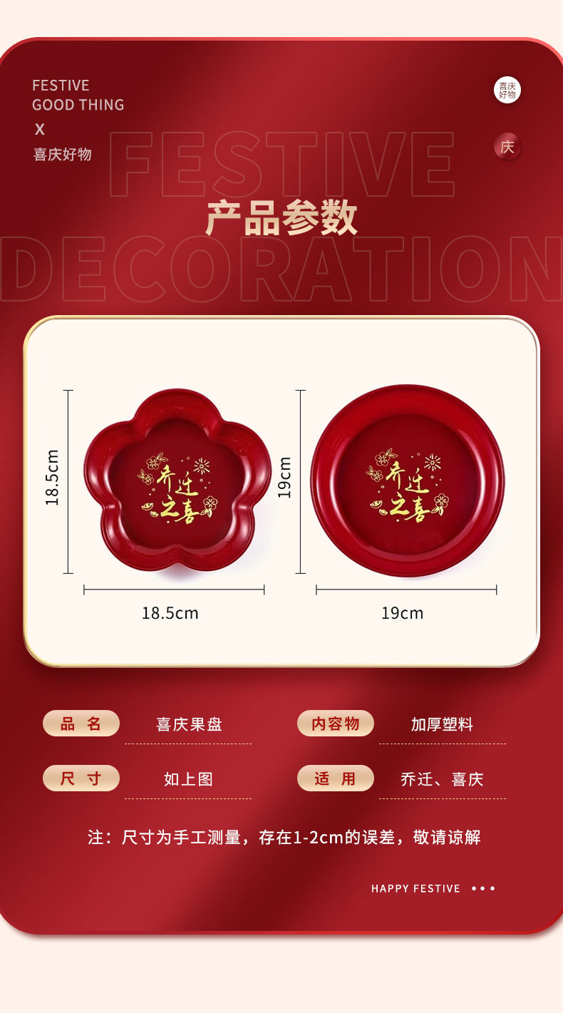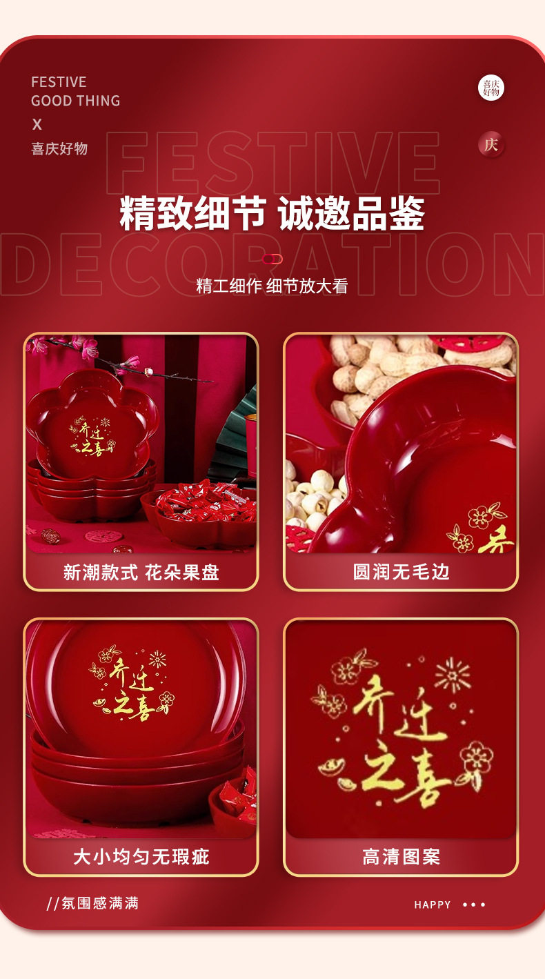 Housewarming new home fruit plate Red moving home tableware new home decoration opening new year fruit plate snack plate