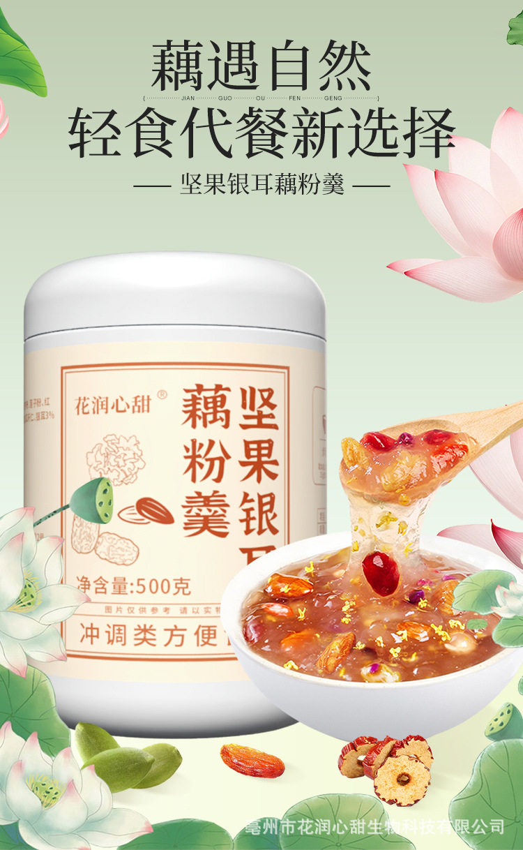 Nut and Tremella Lotus Root Powder Soup Breakfast Nutritional Meal Replacement Lotus Root Powder Soup One Piece Wholesale 500g Canned Pure Lotus Root Powder