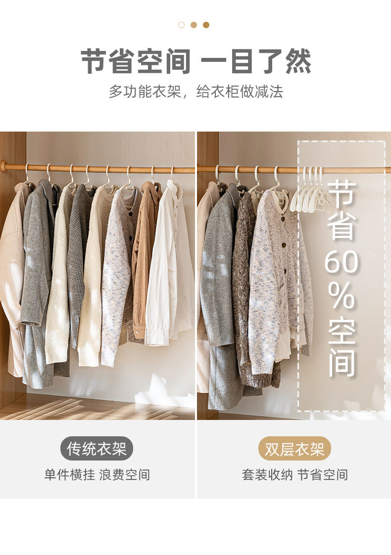 Set with Plastic Double-Layer Clothes Hanger, Traceless Household Clothes Drying Storage Bag, Anti-Shoulder Corner Sliding Hanging Clothes Drying Support
