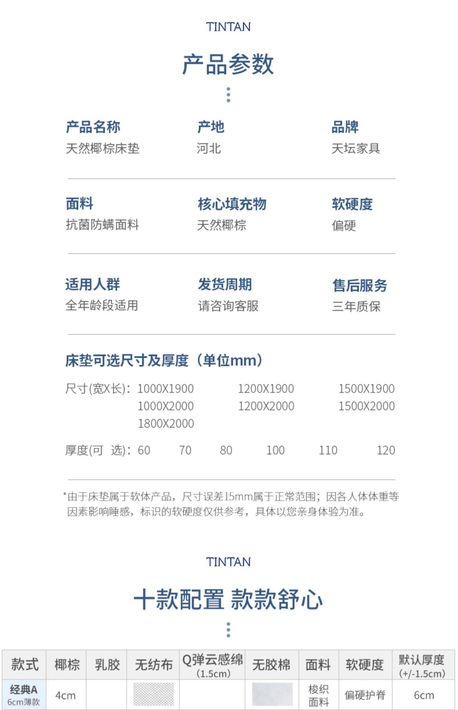 | Color | Classic a style: 6cm thick (4cm brown + woven fabric),Classic b model: 7cm thick (4cm brown + 1cm latex + woven fabric),Classic c model: 10cm thick (8cm brown + woven fabric),Classic d model: 11cm thick (8cm brown + 1cm latex + woven fabric),Light luxury model a: thickness 8cm (4 ㎝ Coconut palm + q elastic cloud-like cotton + knitted fabric),Light luxury model b: thickness 10cm (4㎝Coconut fiber + 2cm latex + q-bounce cloud-like cotton + knitted fabric,Light luxury c model: thickness 10cm (6㎝Coconut palm + q elastic cloud-like cotton + knitted fabric),Light luxury d model: thickness 12cm (6㎝Coconut fiber + 2cm latex + q-bounce cloud-like cotton + knitted fabric,Light luxury e model: 10cm thick folding model (6㎝Coconut palm + q elastic cloud-like cotton + knitted fabric),Classic e model: 6cm thick folding model (4cm brown + woven fabric) |