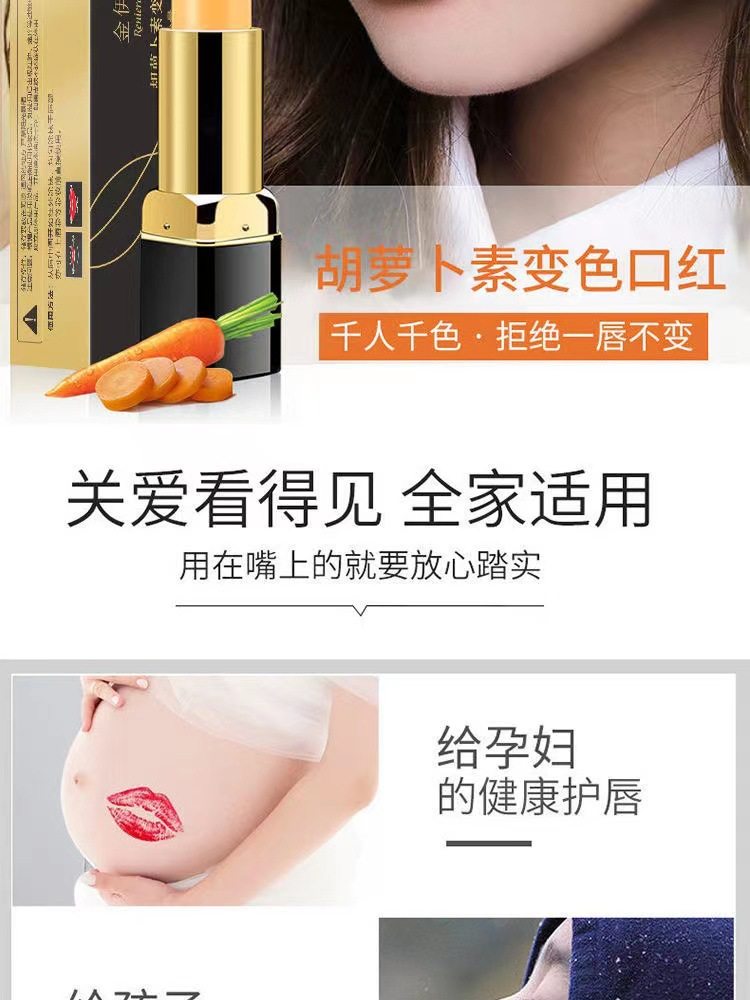 Carotene color-changing lip balm temperature-changing lipstick lasting non-fading moisturizing non-stick Cup male and female students