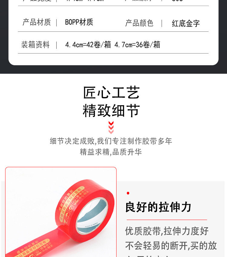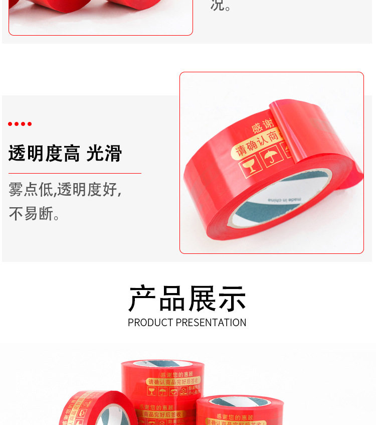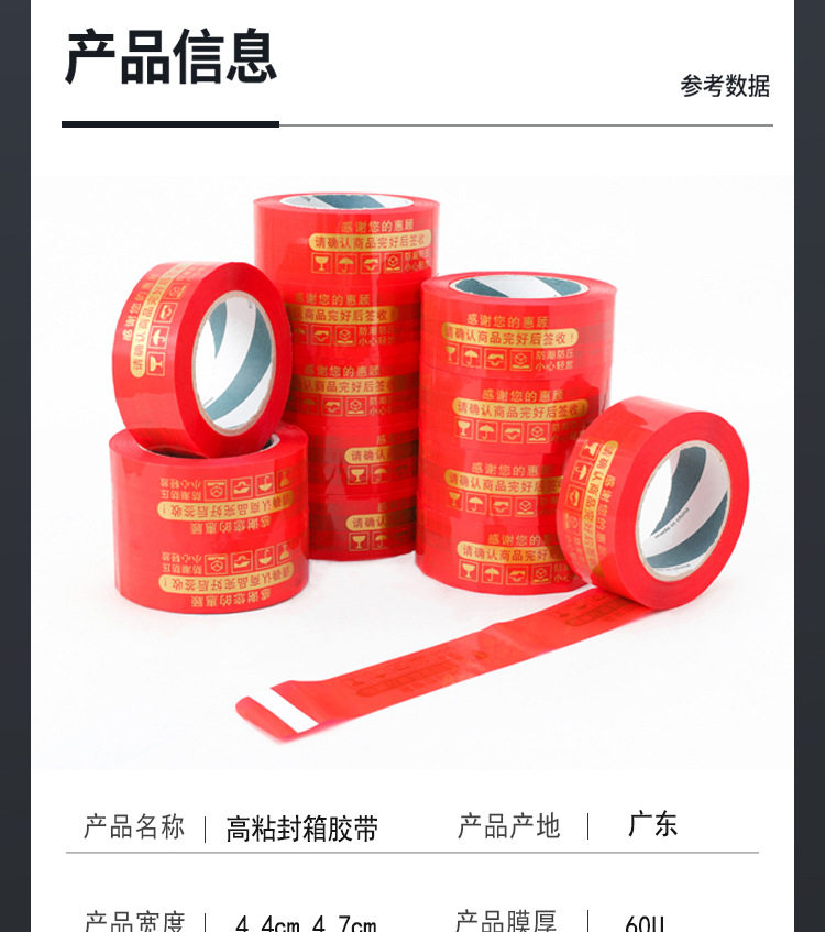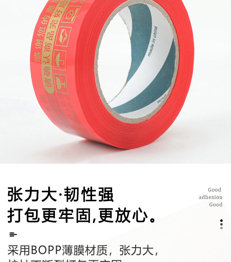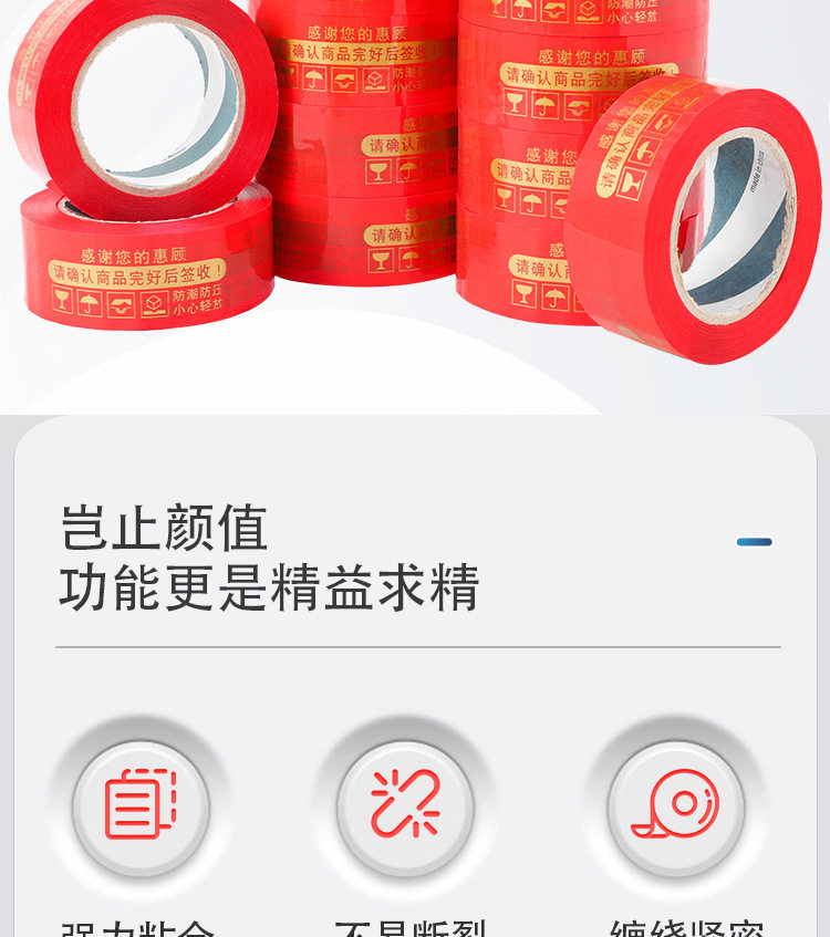 | Specifications and models | Gold lettering on red background; 4.5cm width * 1.8 thickness * 110(72 rolls/box),Gold lettering on red background; 4.5cm width * 2.2 thickness * 150(72 rolls/box),Gold lettering on red background; 4.5cm width * 2.5 thickness * 190(72 rolls/box),Gold lettering on red background; 4.5cm width * 3.0 thickness * 260(48 rolls/box),Gold lettering on red background; 4.8cm width * 1.8 thickness * 110(72 rolls/box),Gold lettering on red background; 4.8cm width * 2.2 thickness * 150(72 rolls/box),Gold lettering on red background; 4.8cm width * 2.5 thickness * 190(72 rolls/box),Gold lettering on red background; 4.8cm width * 3.0 thickness * 260(48 rolls/box) |